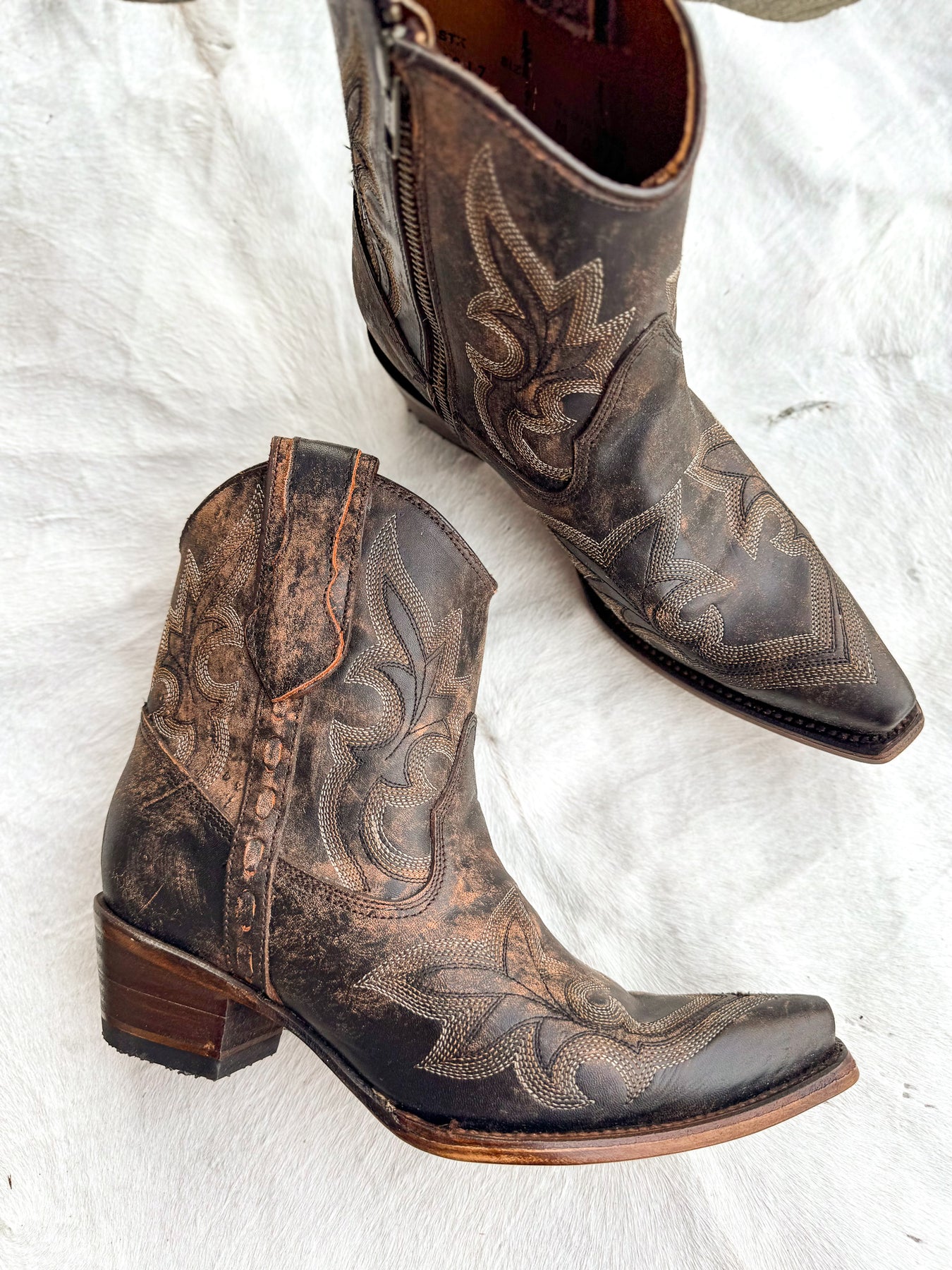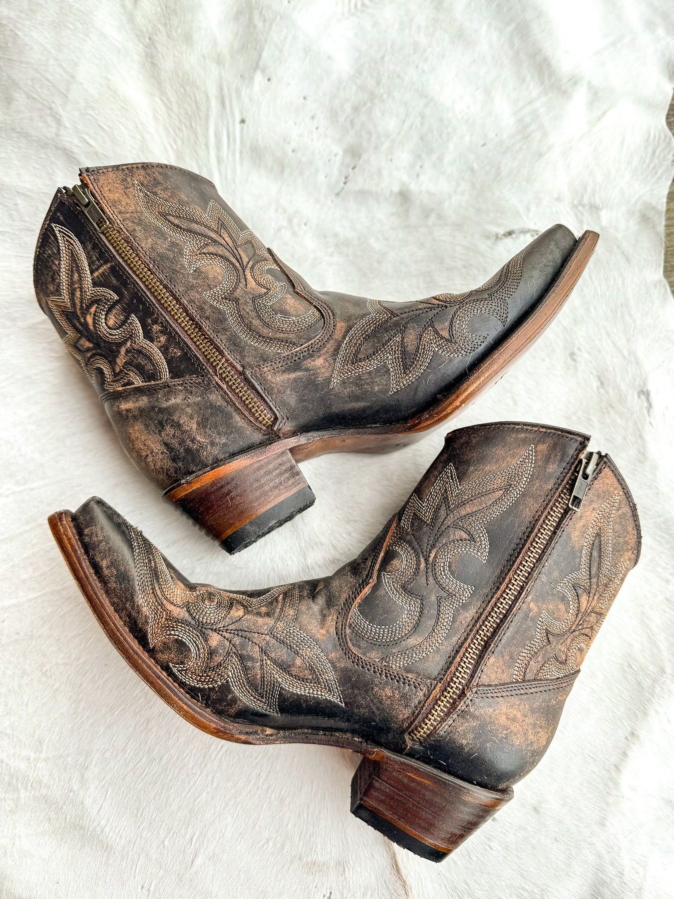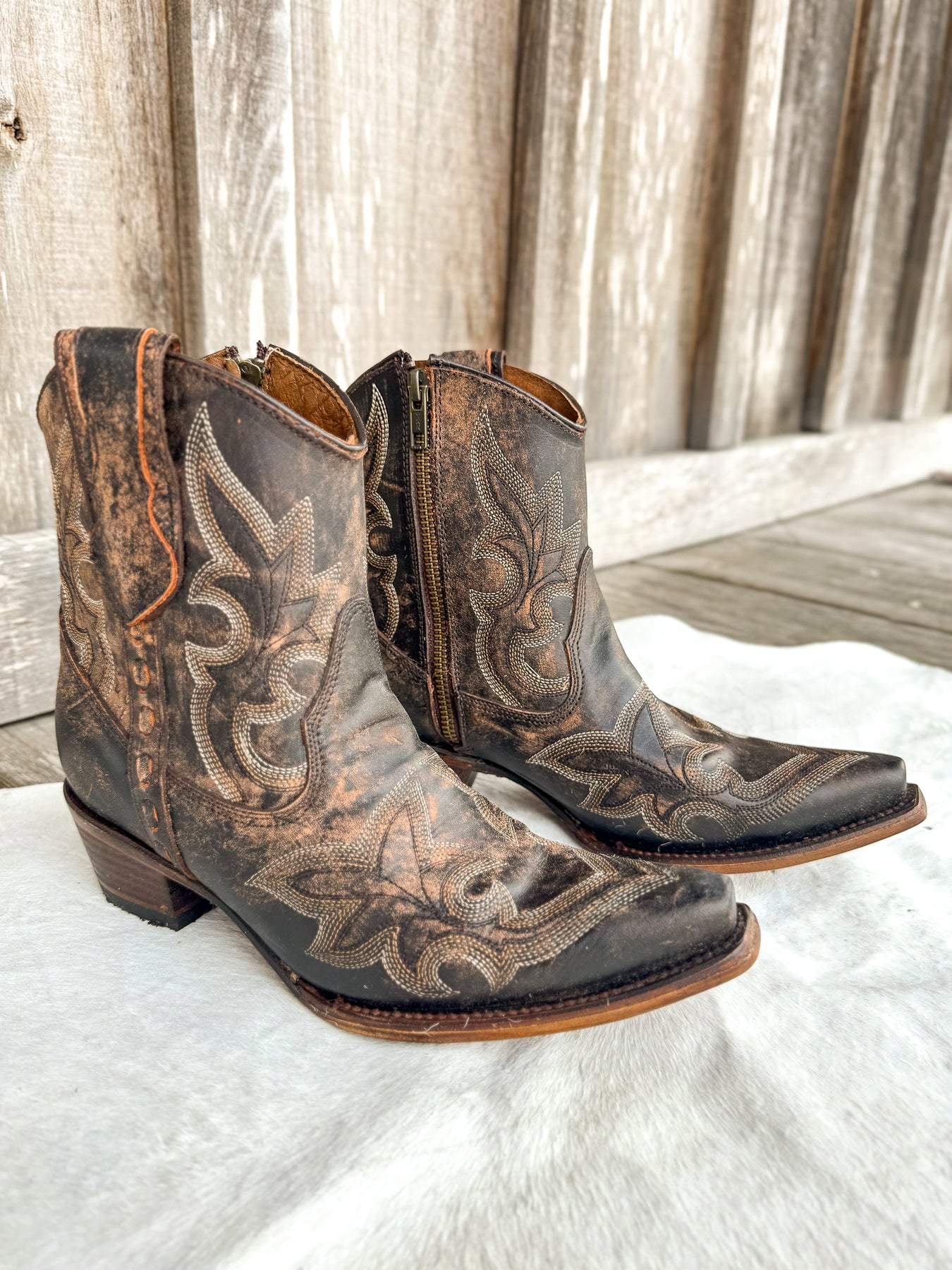 Women's Circle G By Corral Black & Brown Western Zipper Booties