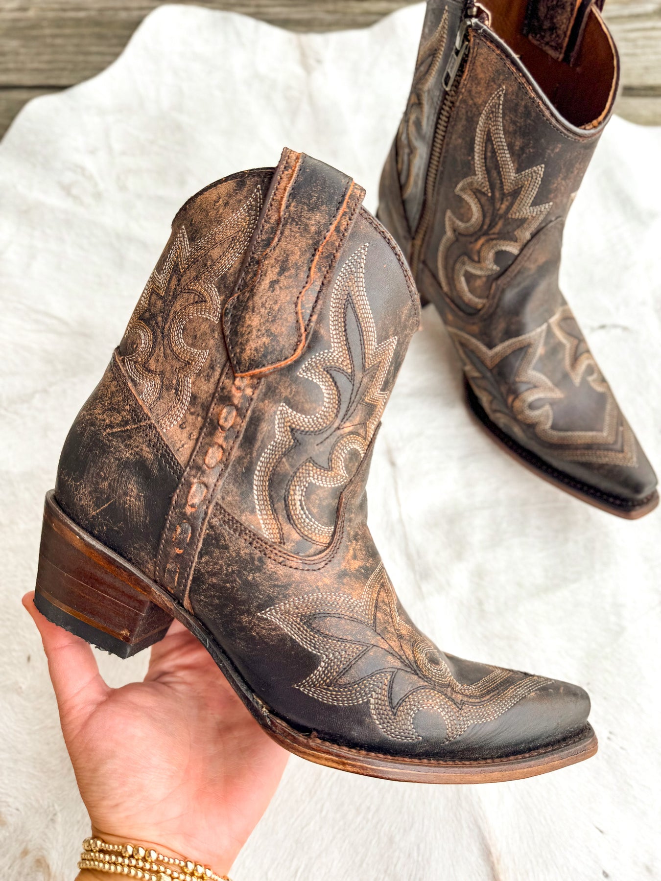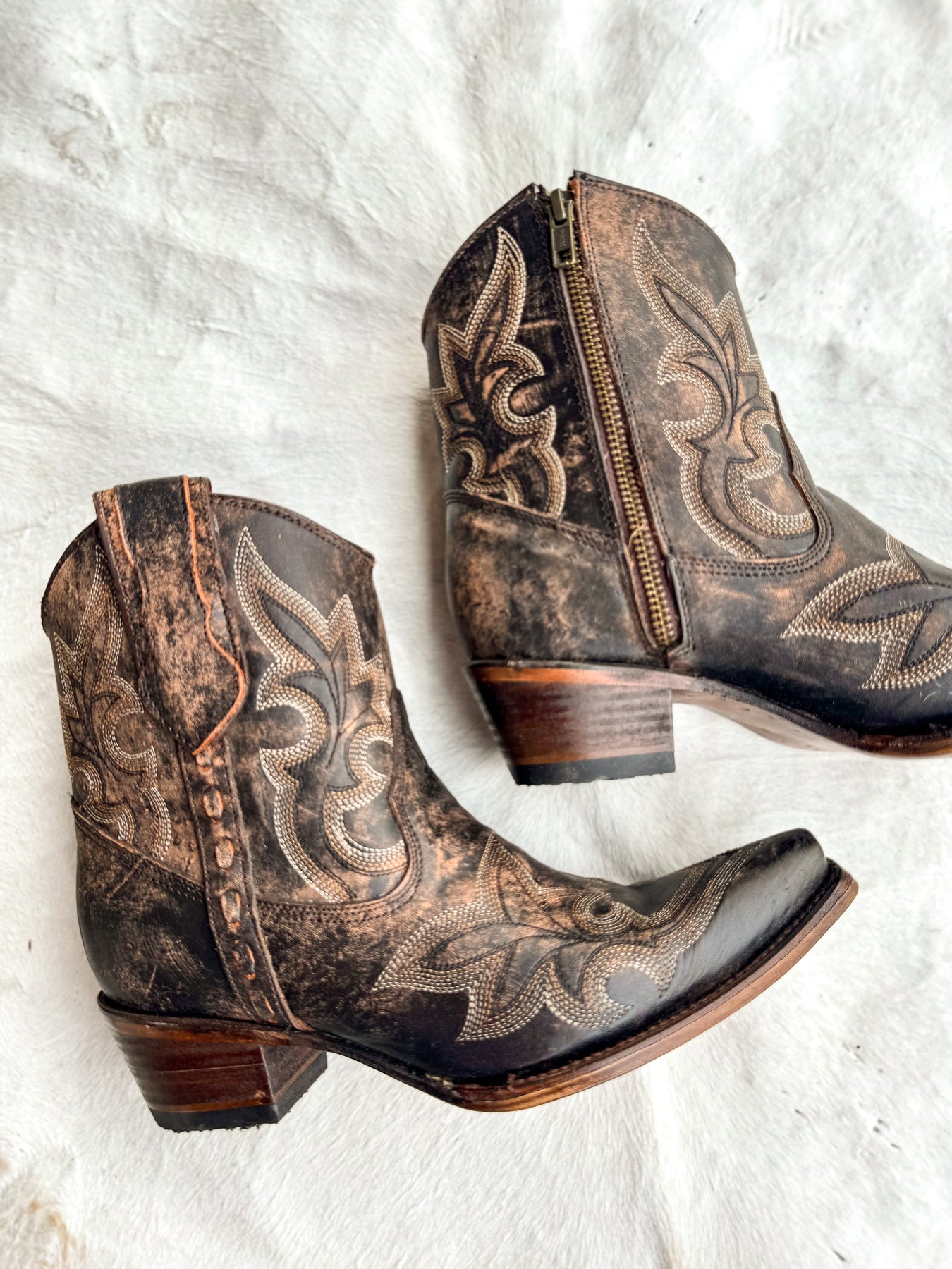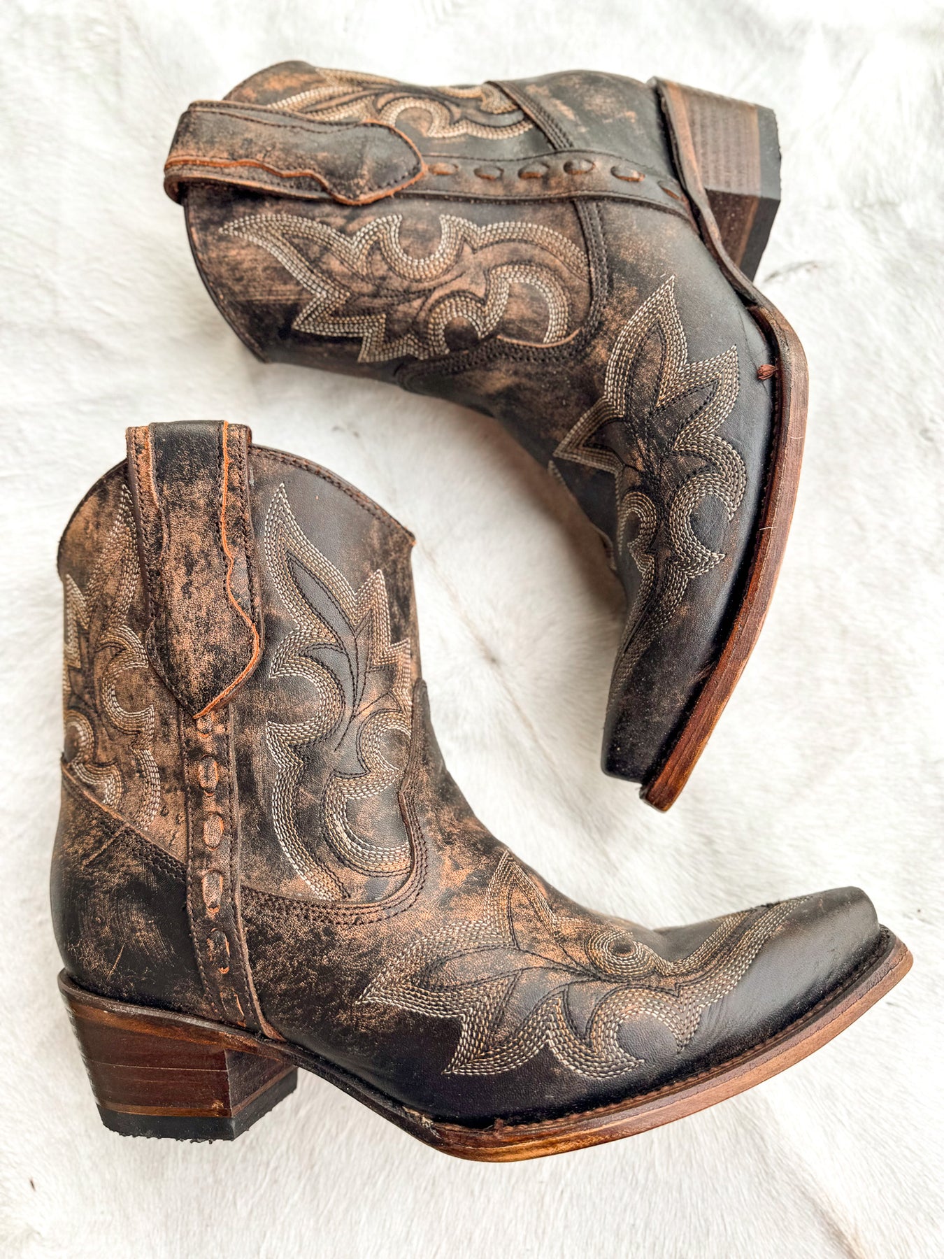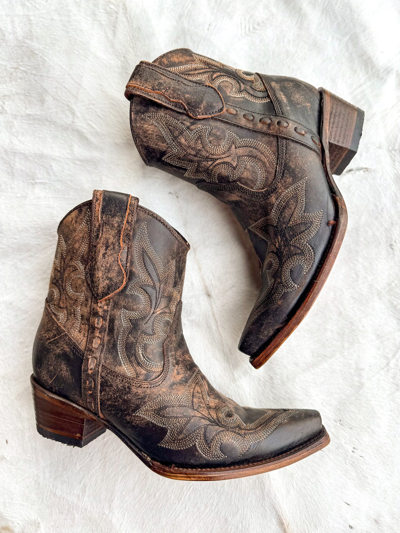 Women's Circle G By Corral Black & Brown Western Zipper Booties