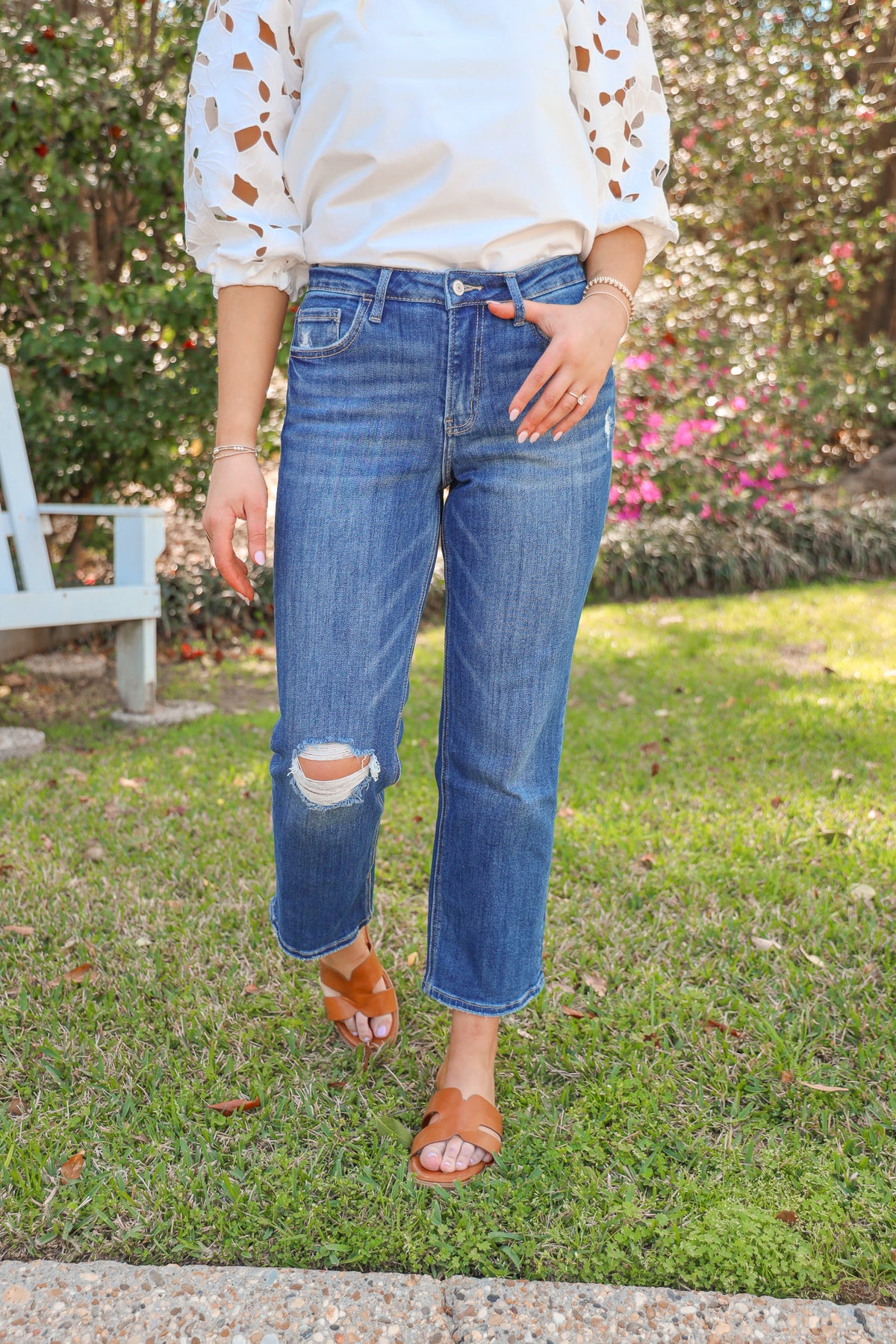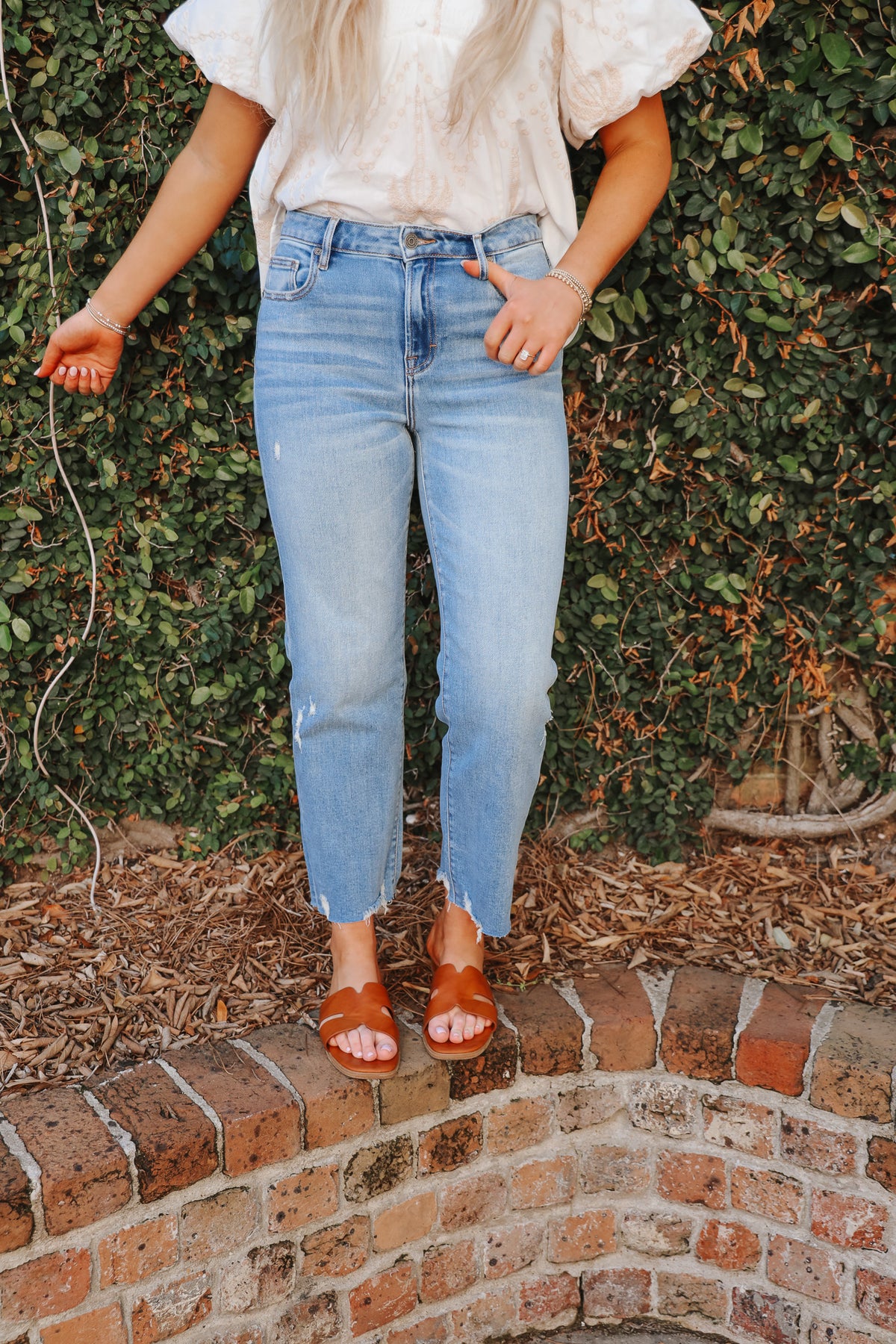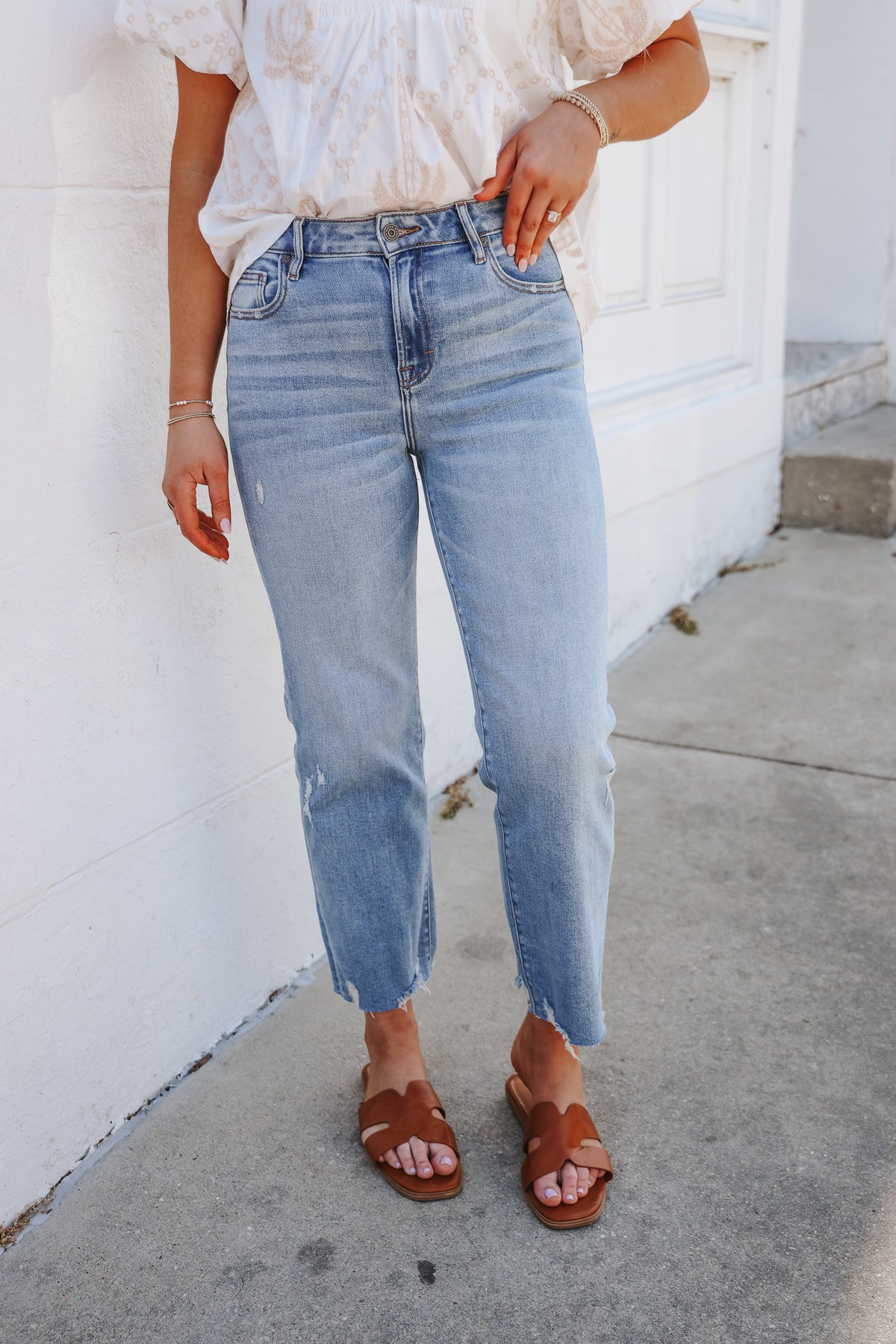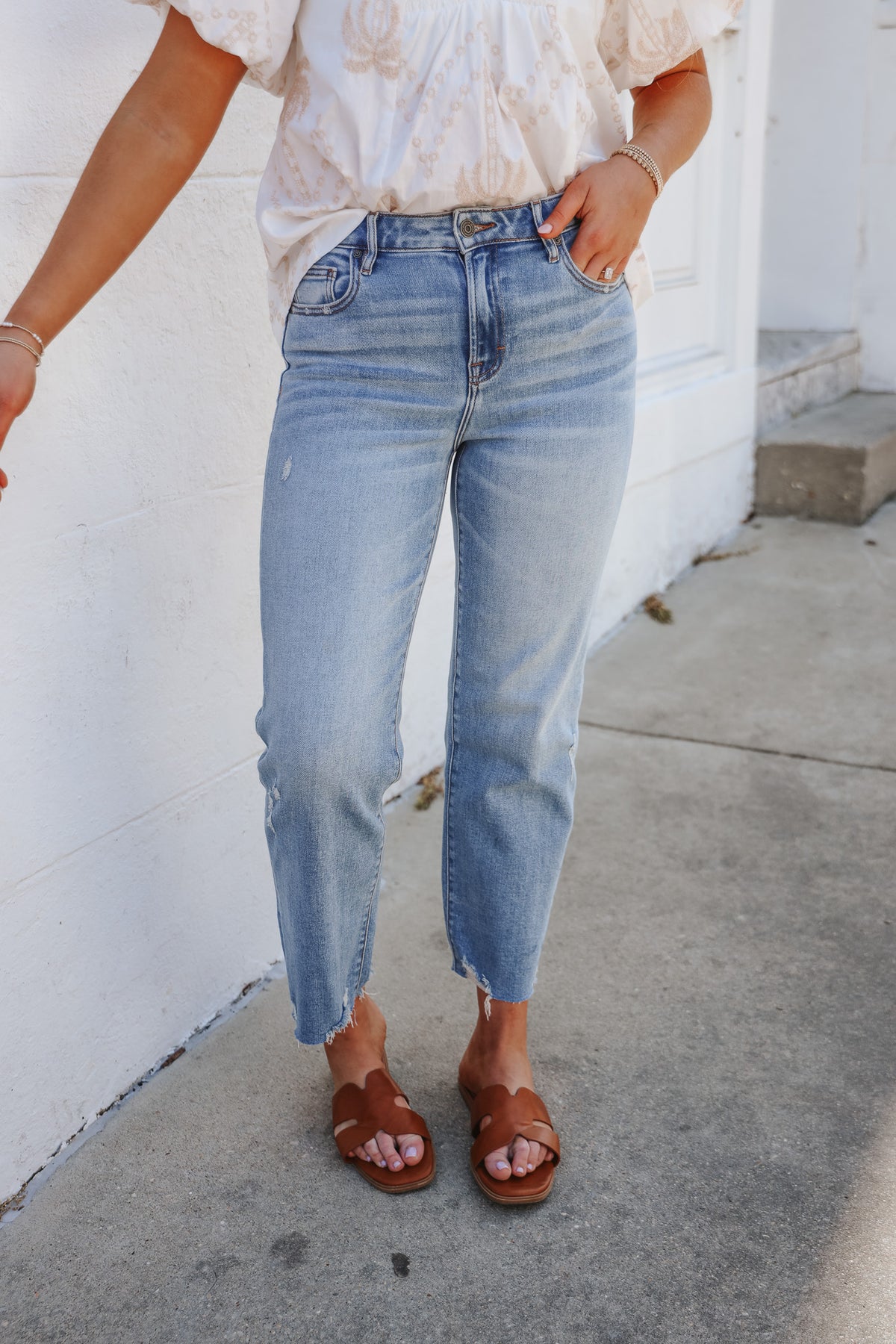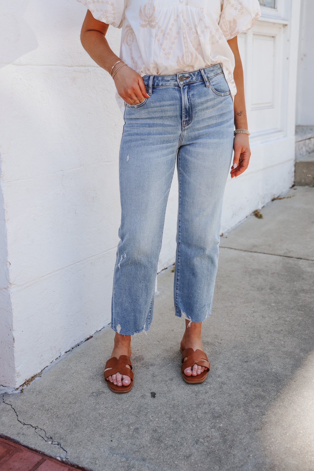 The Sammie Light Wash Crop Barrel Jean