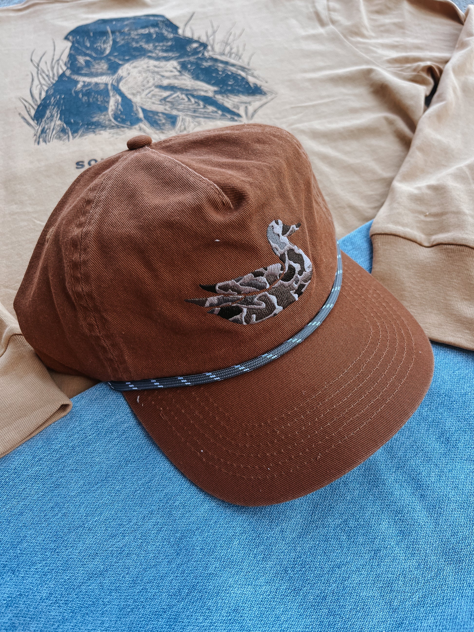 Our Mallard Logo got a camo upgrade on our Ensenada Rope Hat – Camo Duck. Crafted from 100% Cotton, this ultra-soft, comfortable hat features an adjustable snap-back closure and paracord detail along the brim.