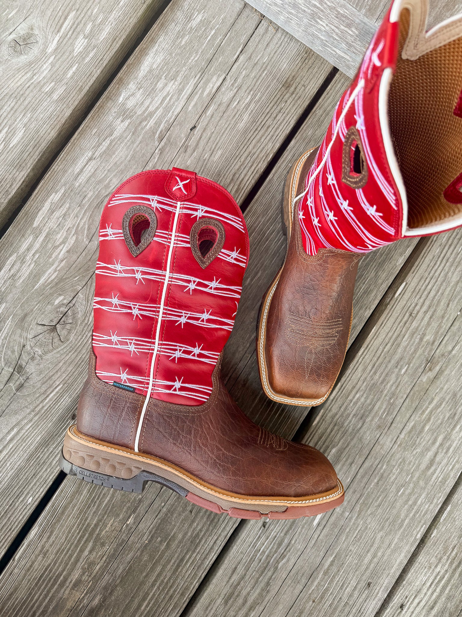 BOTA WESTERN TWISTED X IMPERMEABLE CON NANO PUNTERA EN ALAMBRE DE PÚAS ROJO
