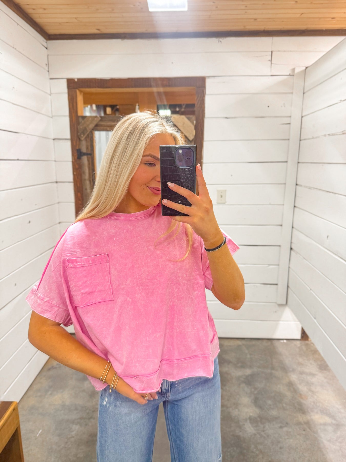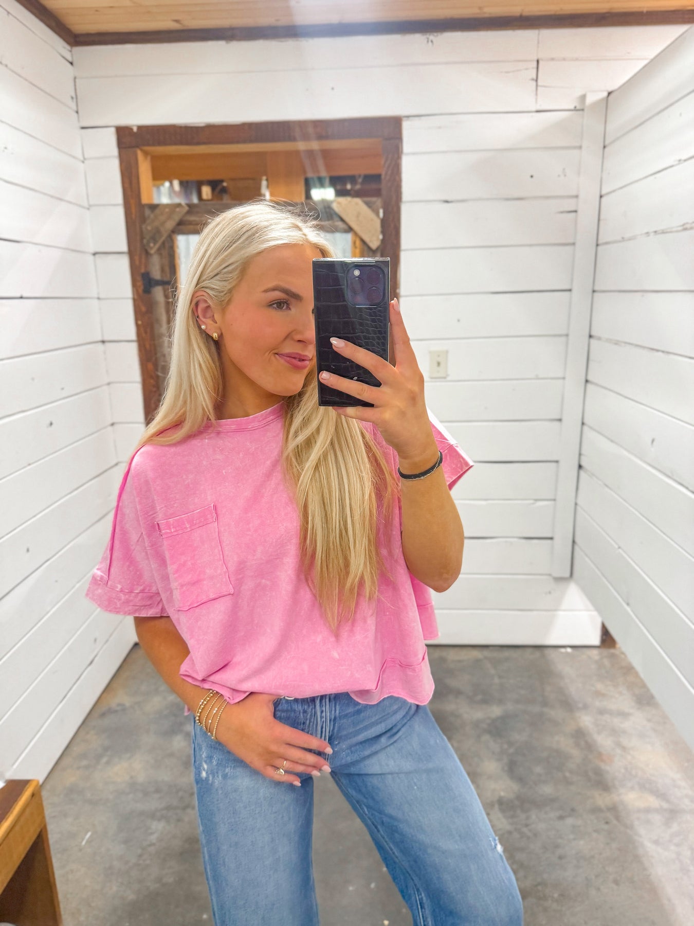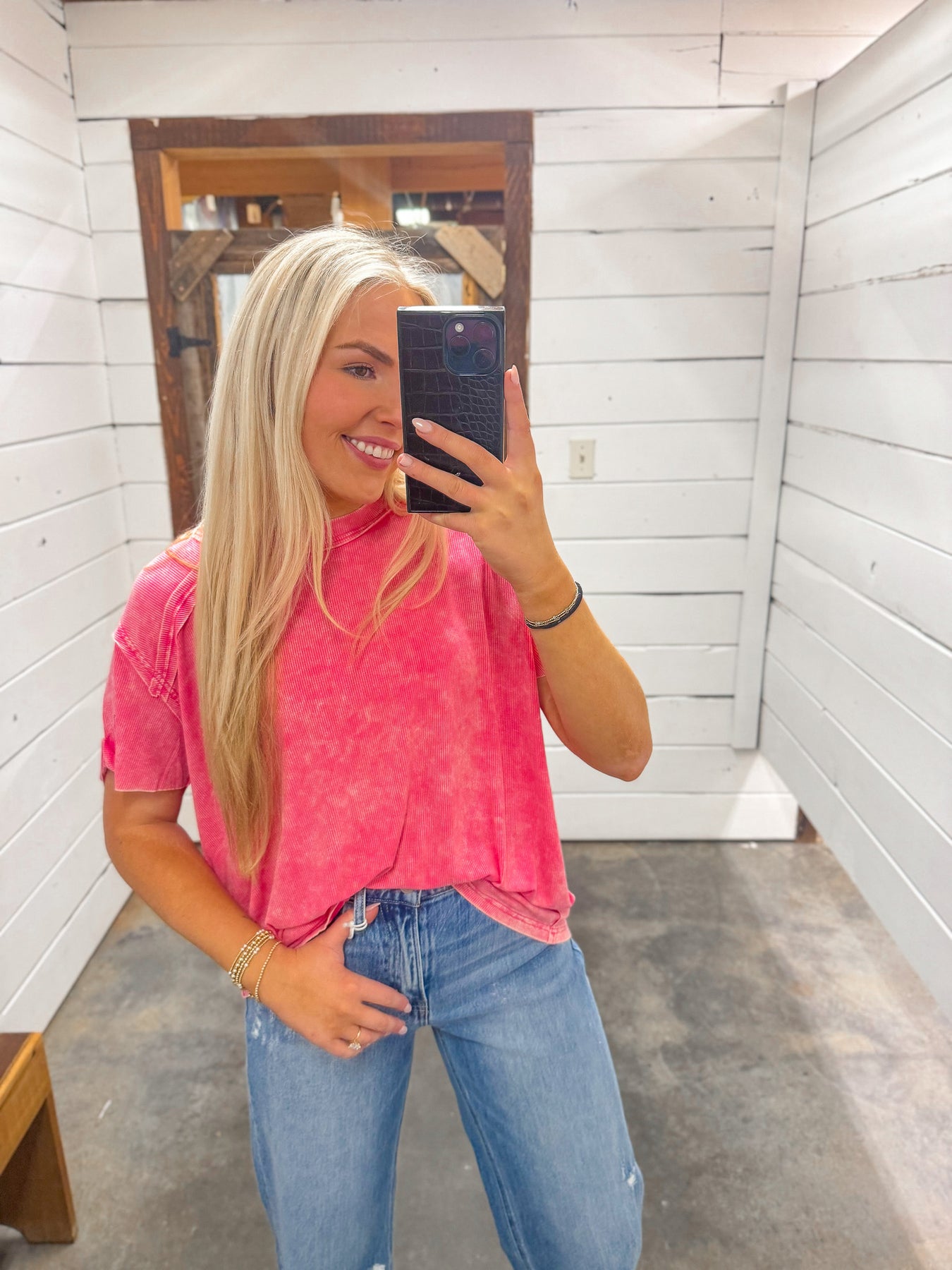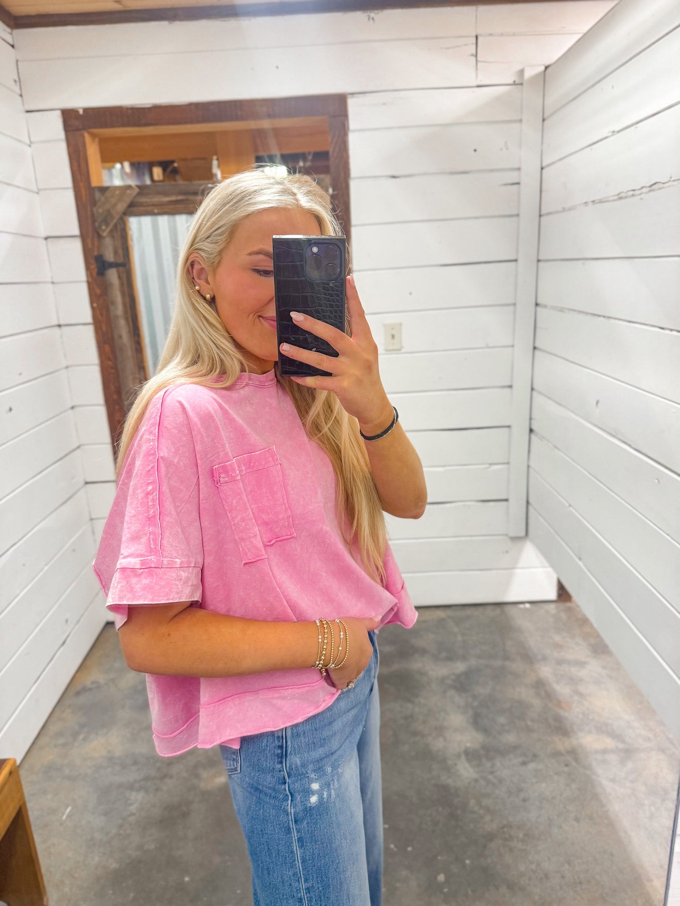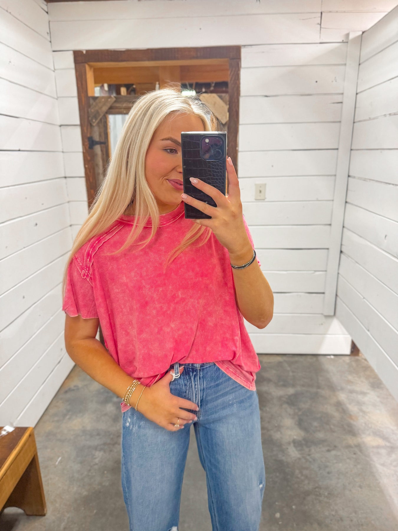 Lulu Mac Long Sleeve Waffle Top in Light Pink