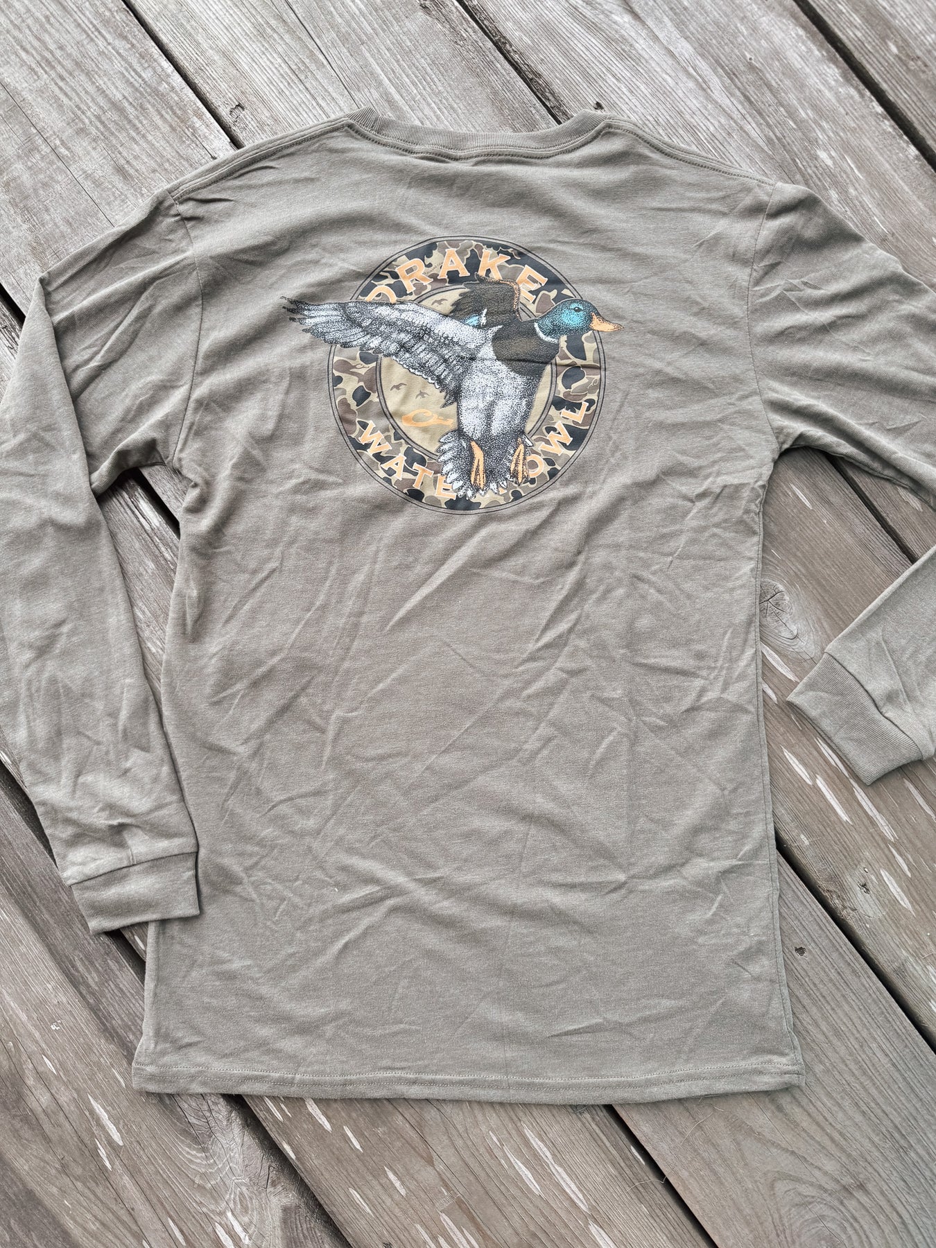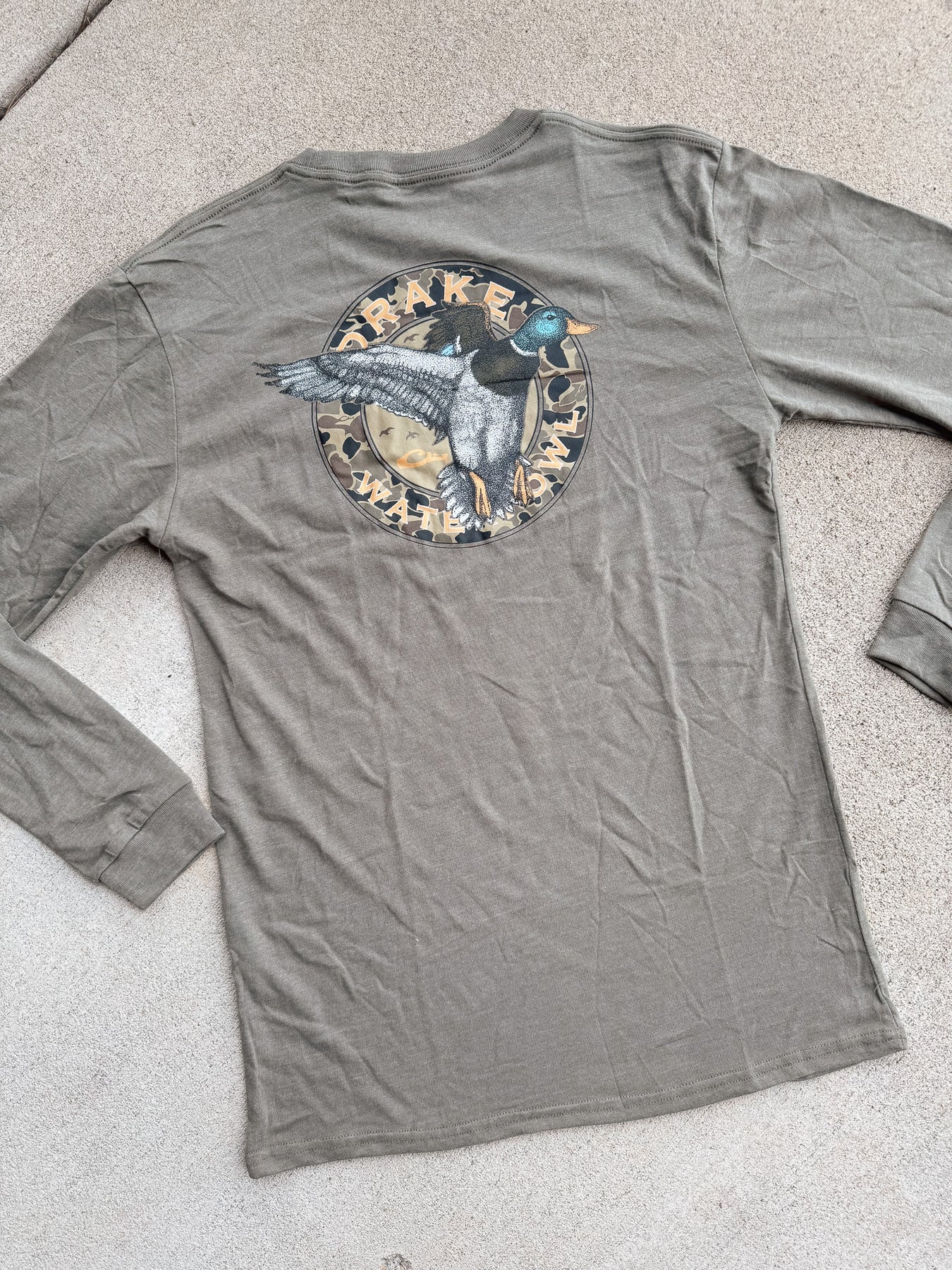 Men's Drake Retro Wood Duck Long Sleeve T-Shirt in Wind Chime