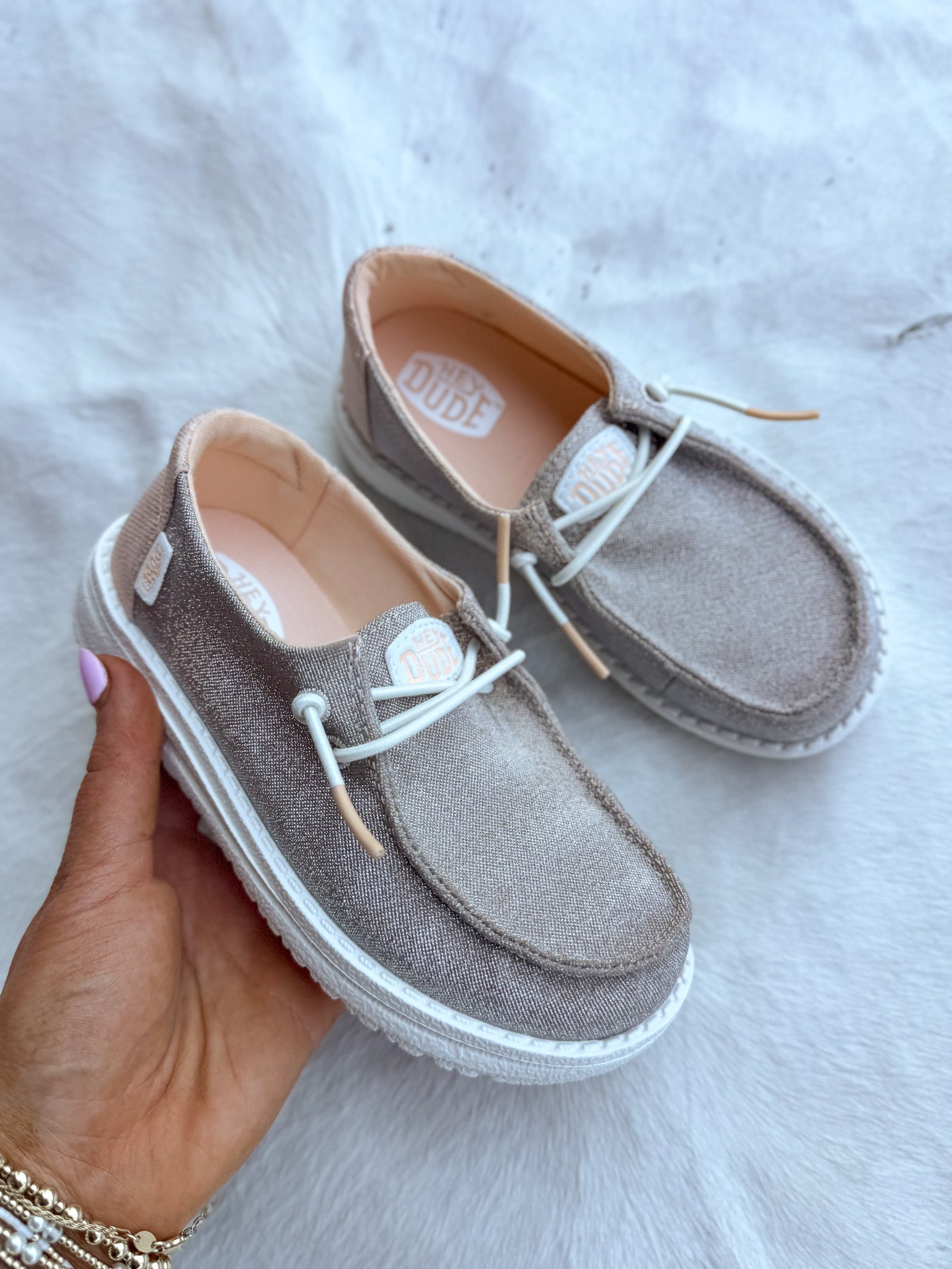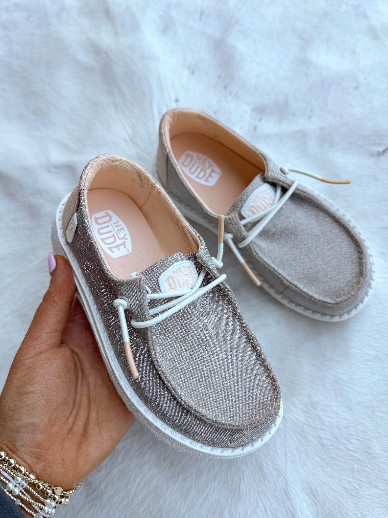 Hey Dude Wendy Youth Metallic Sparkle Rose Gold