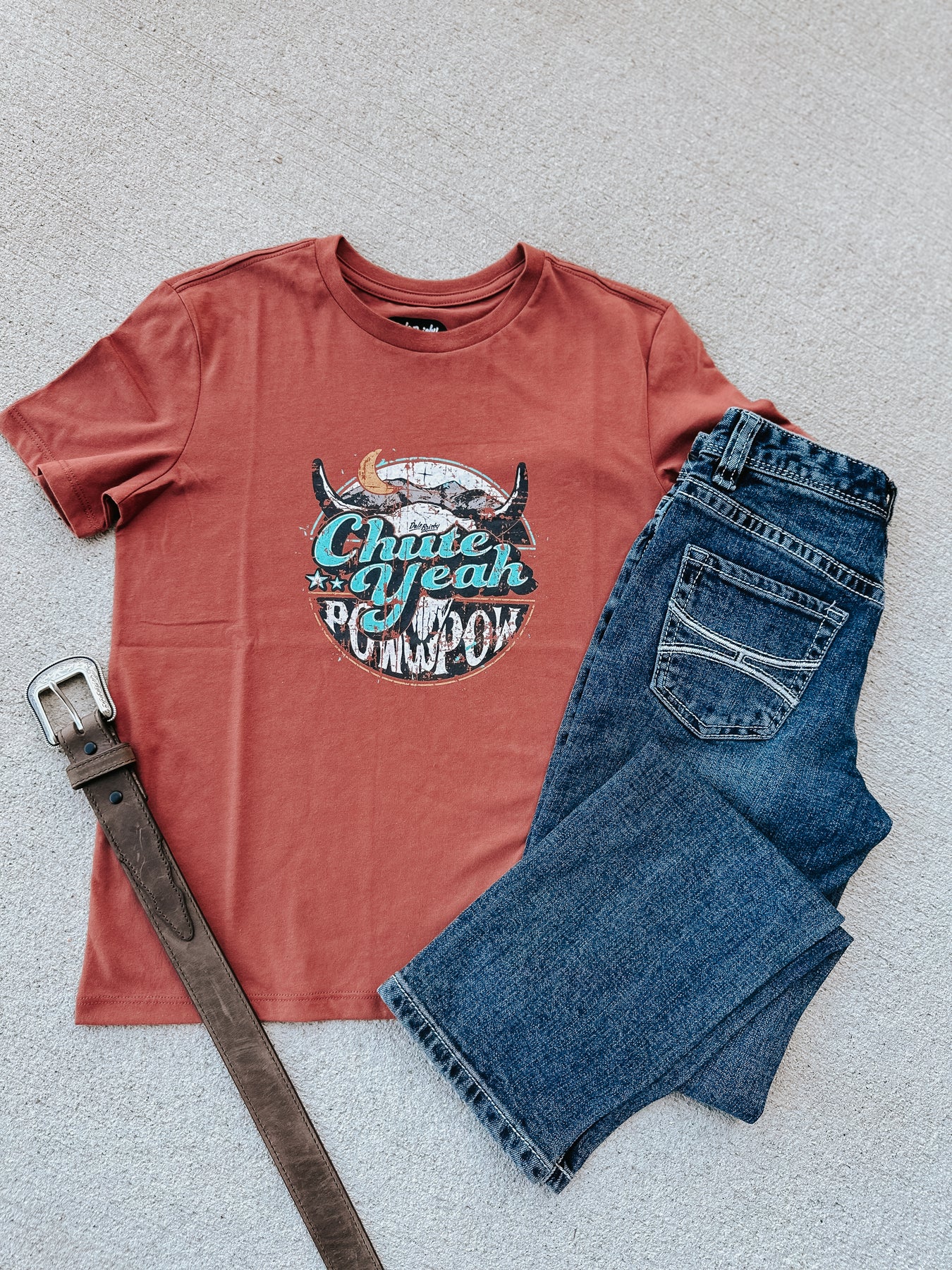 Vaqueros con corte de bota estilo revólver bordados con puntada de cuerda Rock N Roll para niño