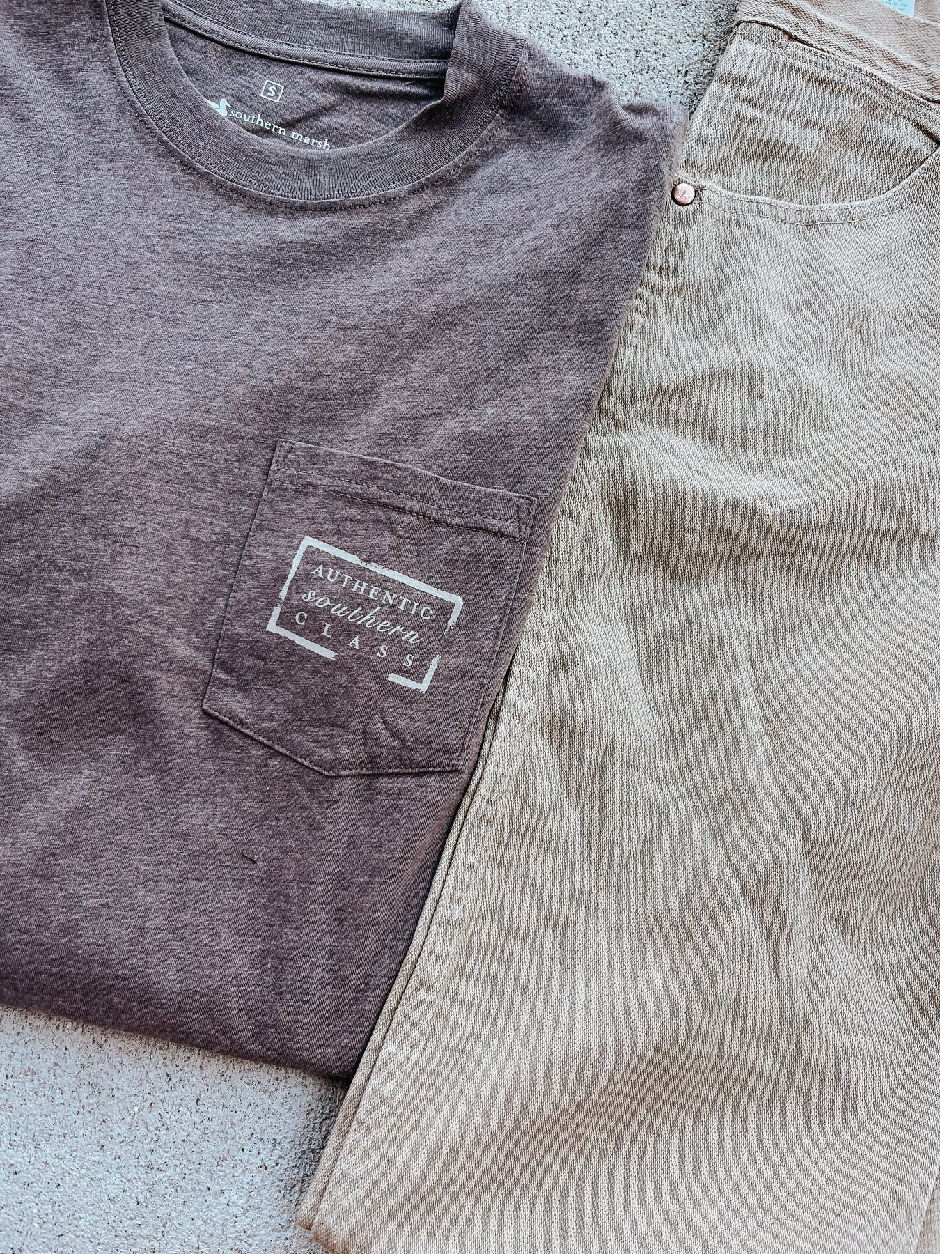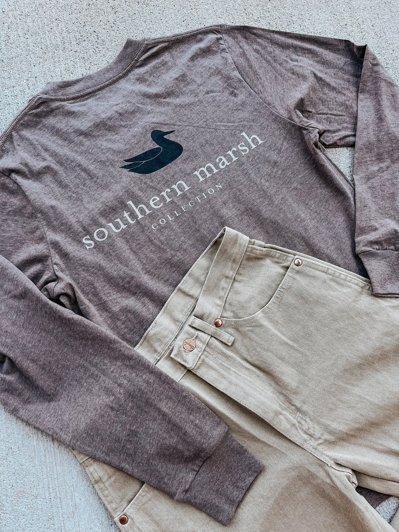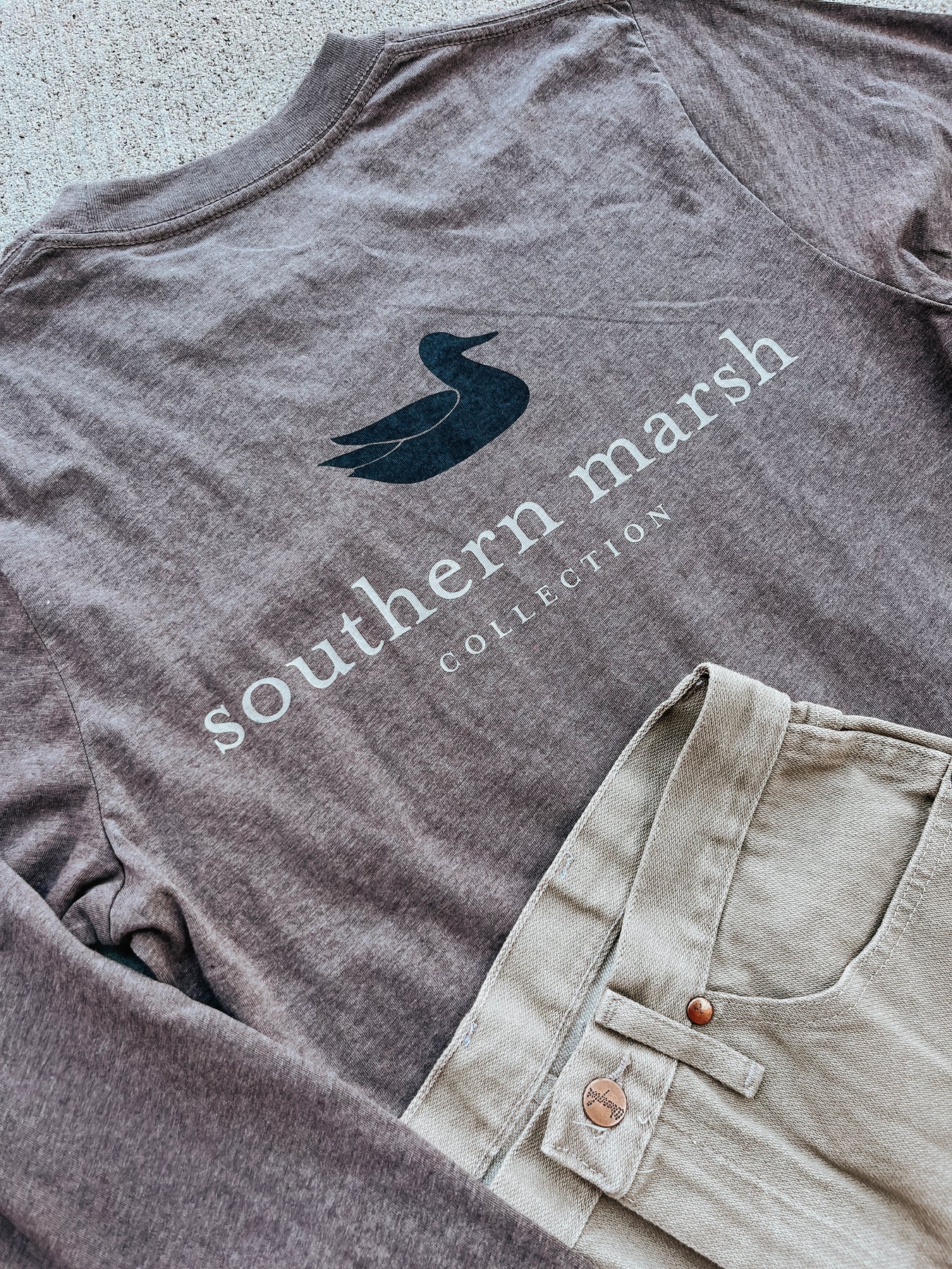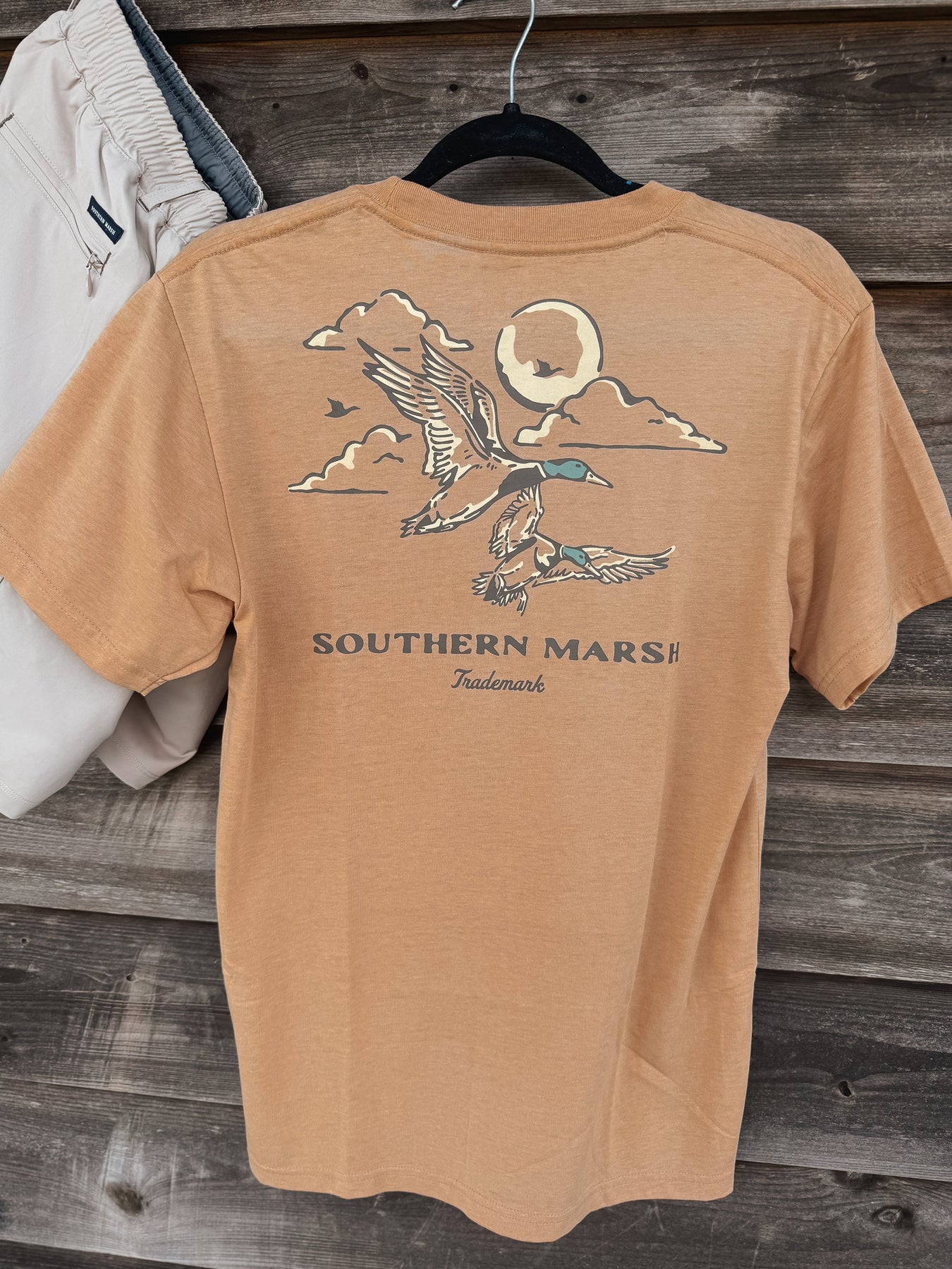 Southern Marsh Vintage Camo Duck Decoy T-Shirt in Carajillo Brown