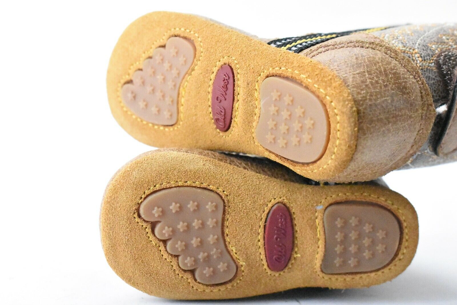 Infant's Old West Poppets feature all over Manmade material with natural rubber sole for grip while walking,
