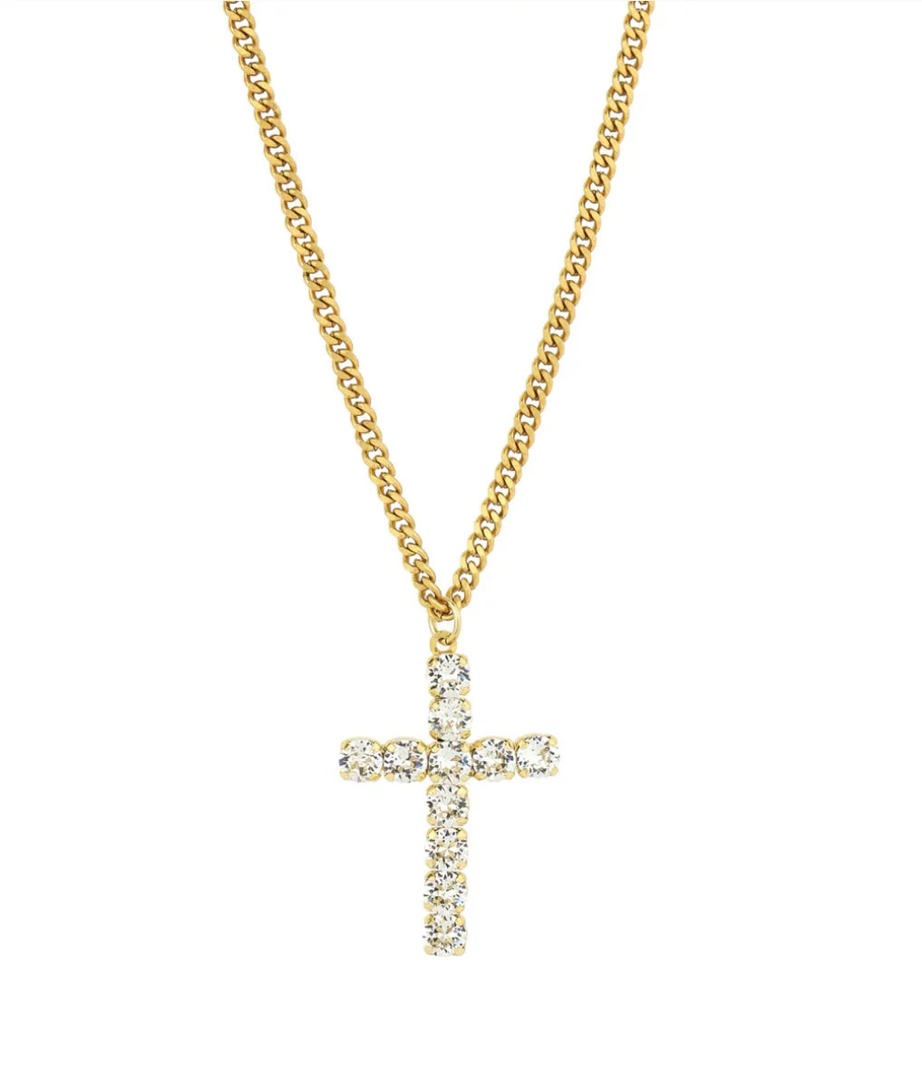 Shine bright with this Clear Cross necklace! Crafted with antique gold plating and high quality crystals, this 16" necklace (with a 3" extension) is perfect for adding a touch of vintage charm to any outfit. Proudly made in Canada.