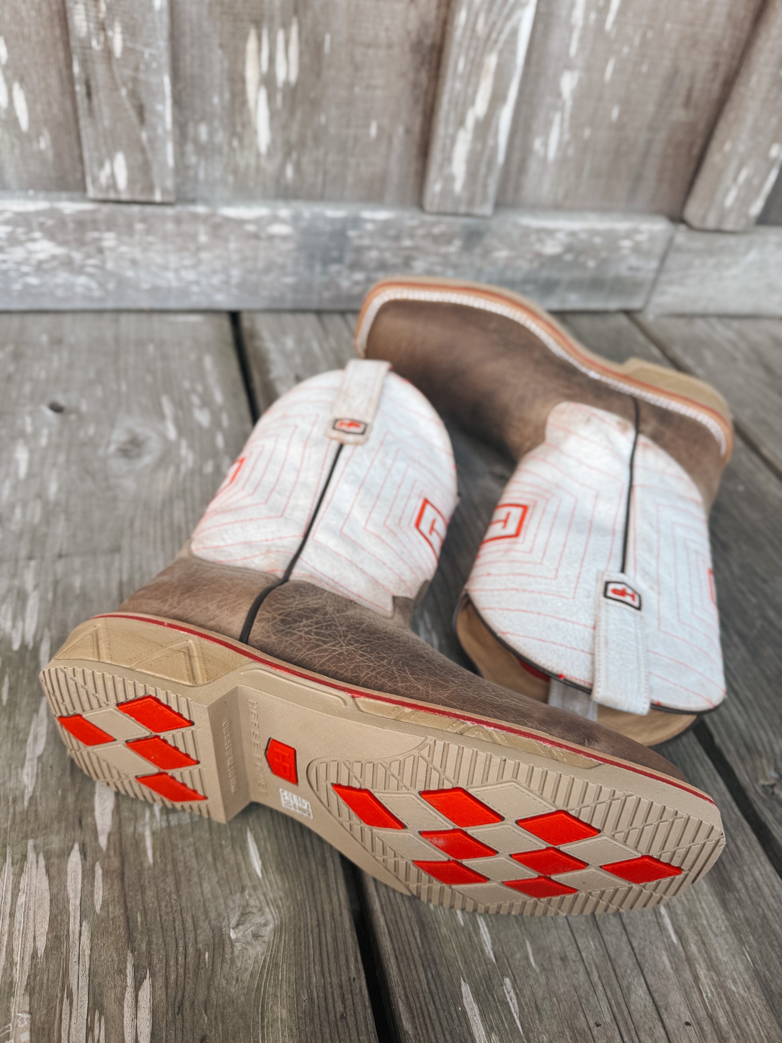 Anderson Bean's Horse Power Work Boots combine durability and protection with an 11" height for ankle support. Crafted from Earth Distressed Bison vamp leather and bleached bone top.