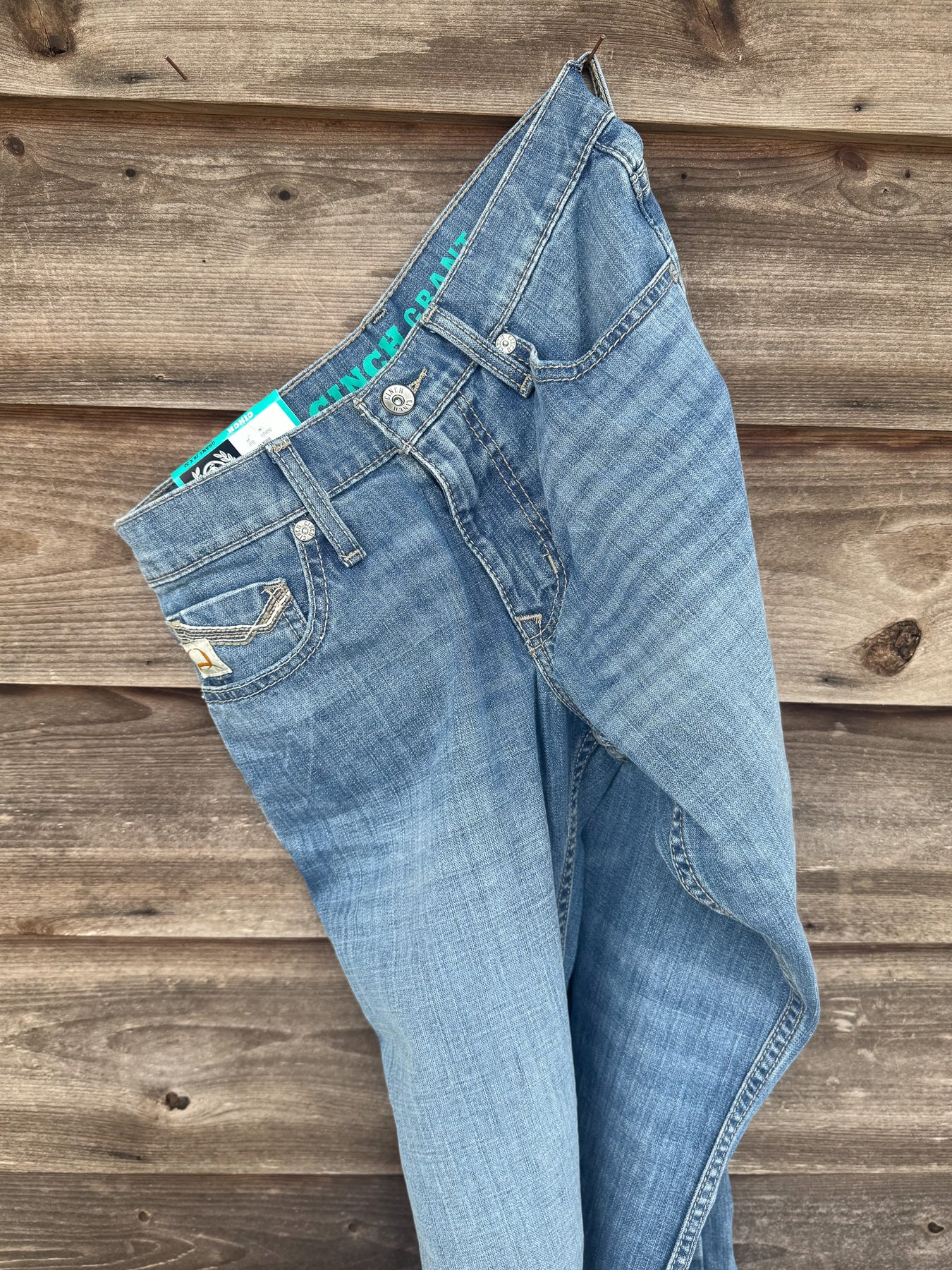 - The CINCH Grant jean features a mid-rise, relaxed hip and thigh and 18.625" boot cut leg opening.