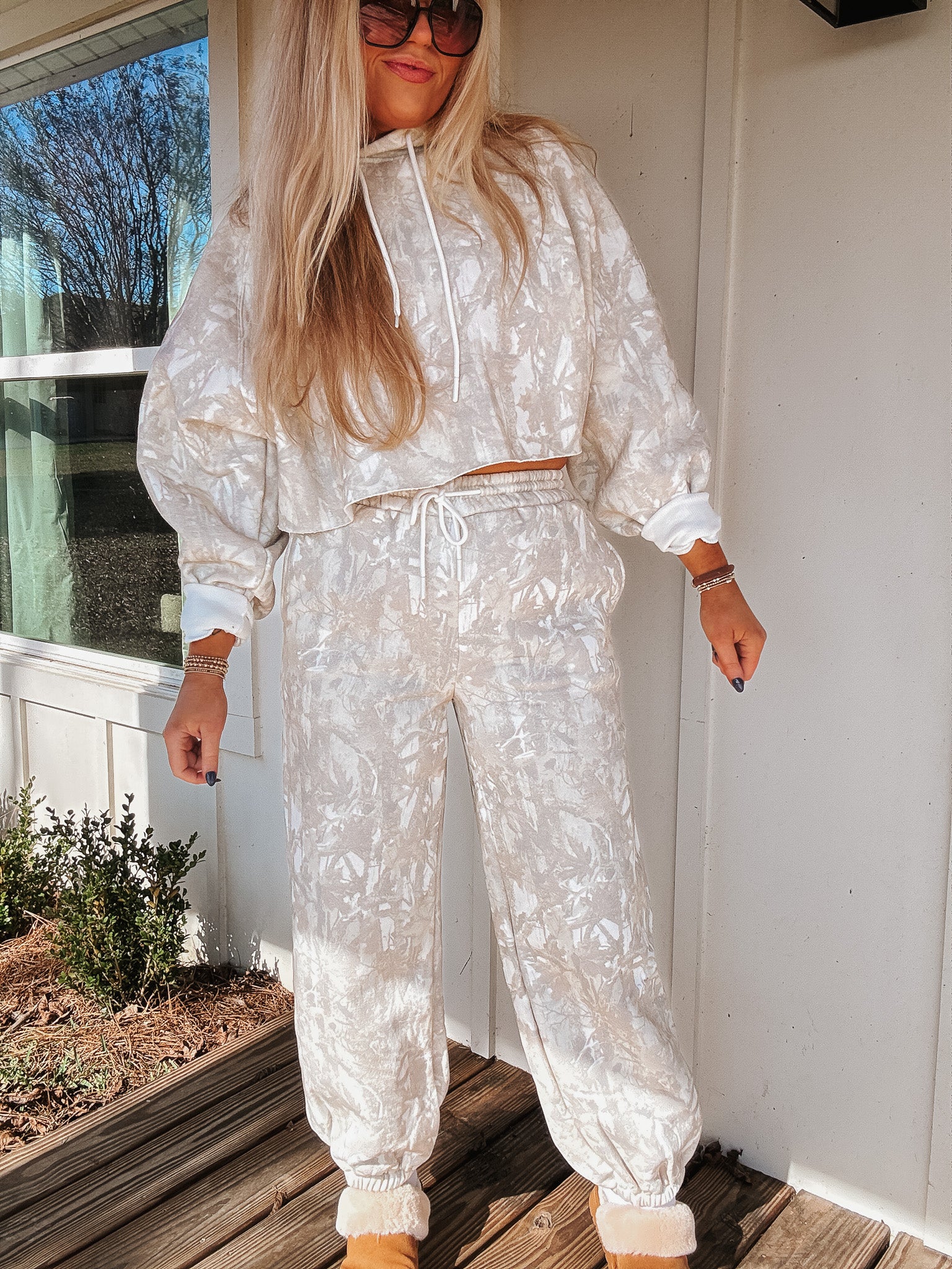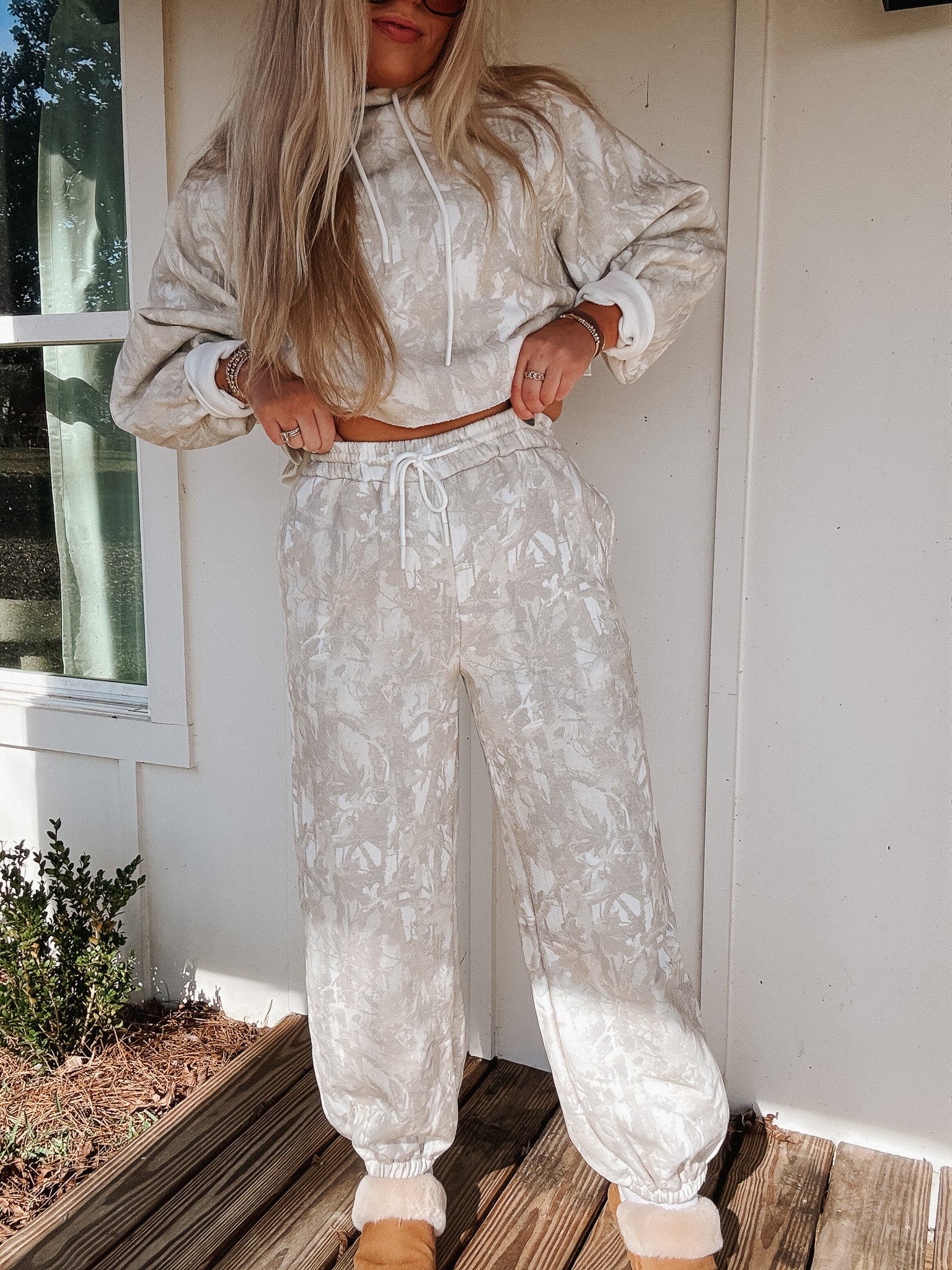 Where lounge meets luxe. Made with ultra-soft fleece, these relaxed-fit bottoms feature a subtle allover tonal wash that adds just the right amount of texture and edge. An elastic waistband with adjustable drawstring ensures the perfect fit, while gathered cuffs give that street-ready silhouette.