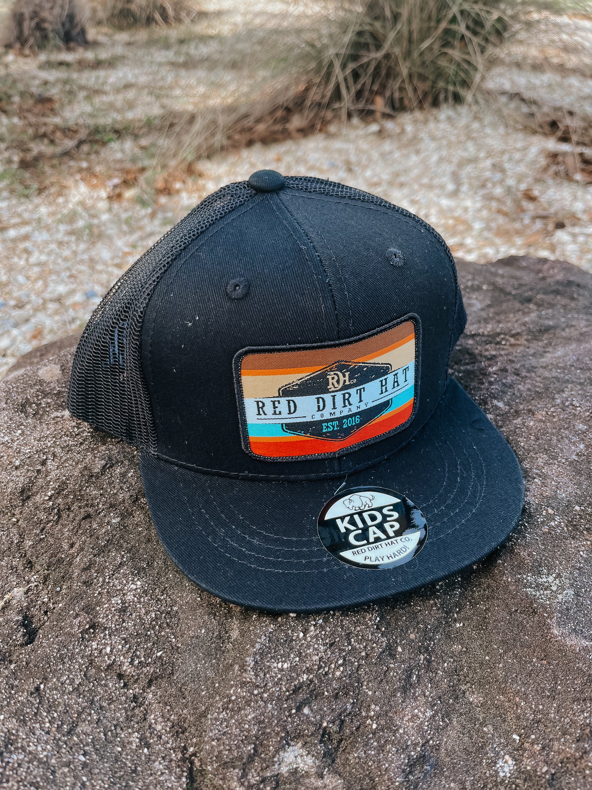 Gorra snapback juvenil completamente negra con el parche RDHC “Army Sunset”.