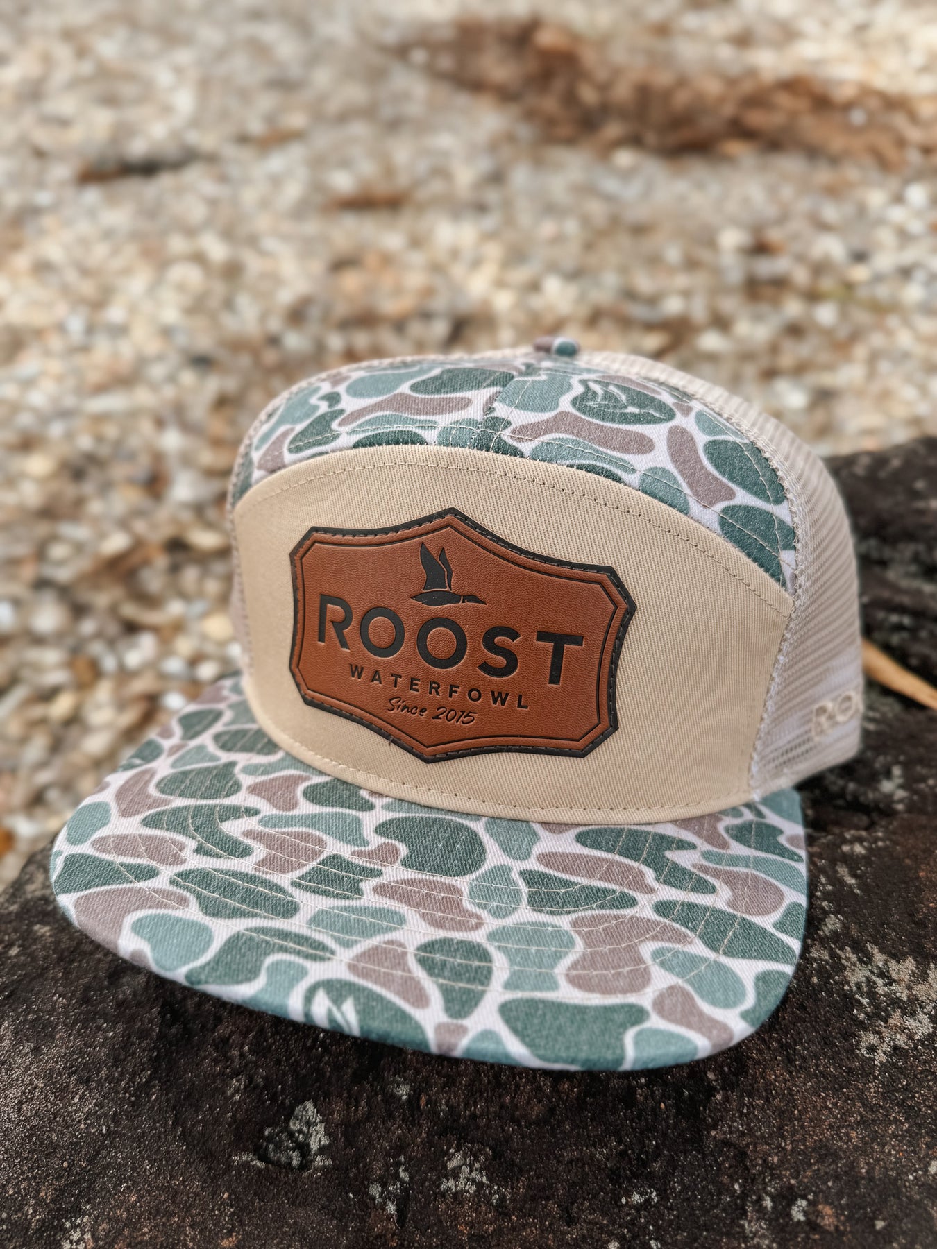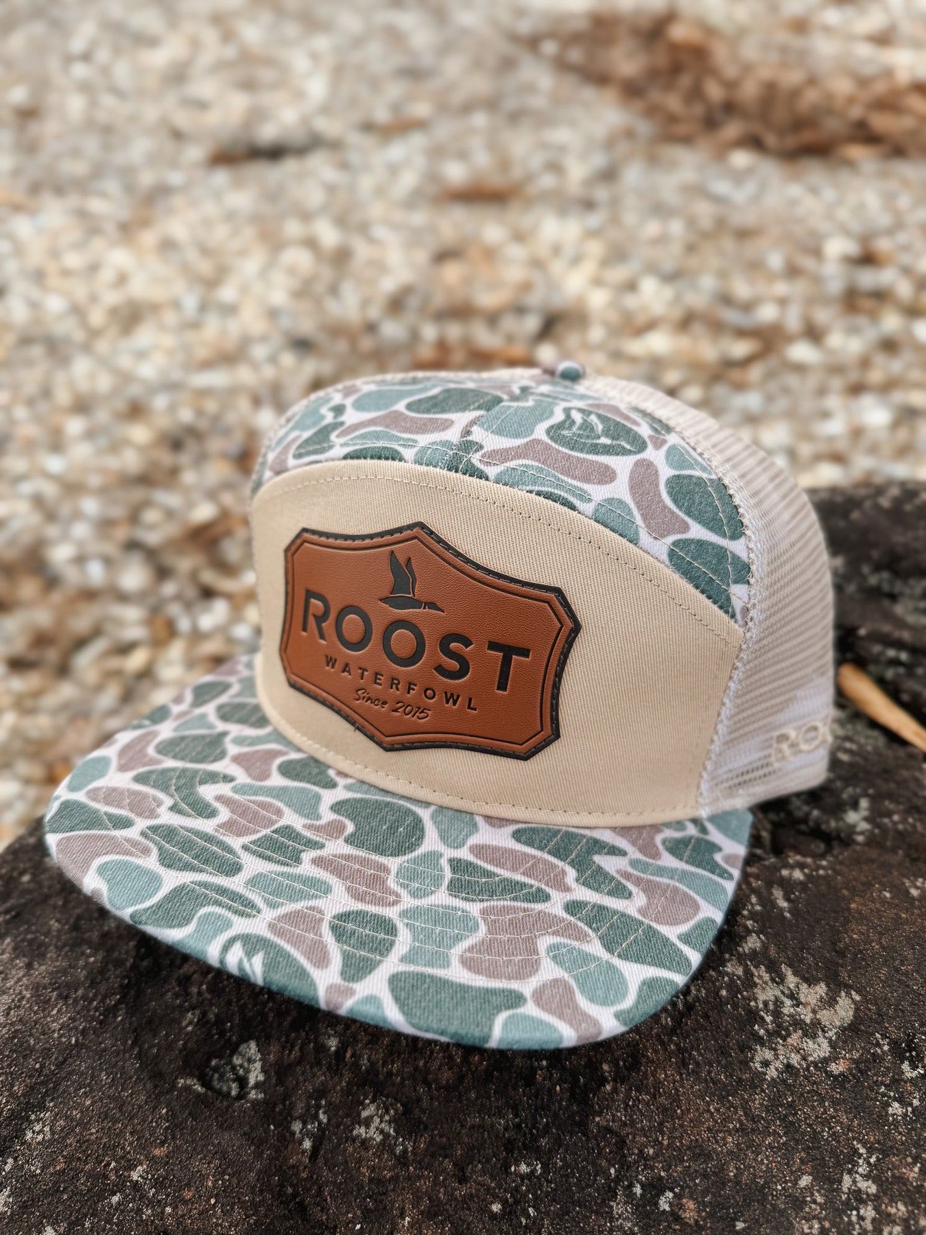Roost Camo 7 Panel Shield Leather Patch Cap