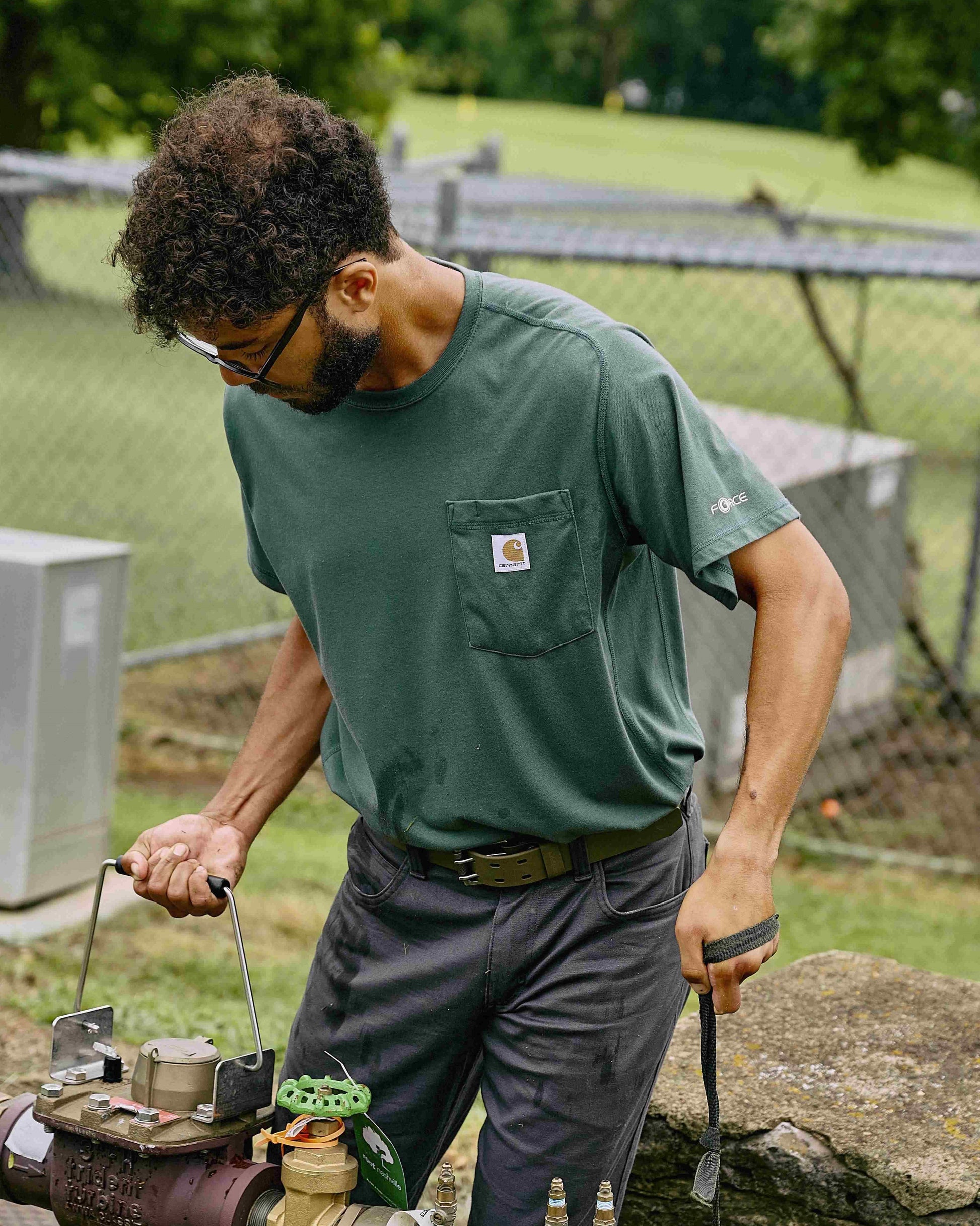 Men's Carhartt Force Relaxed Fit Midweight Short Sleeve Pocket T-Shirt - Forestry Heather Green