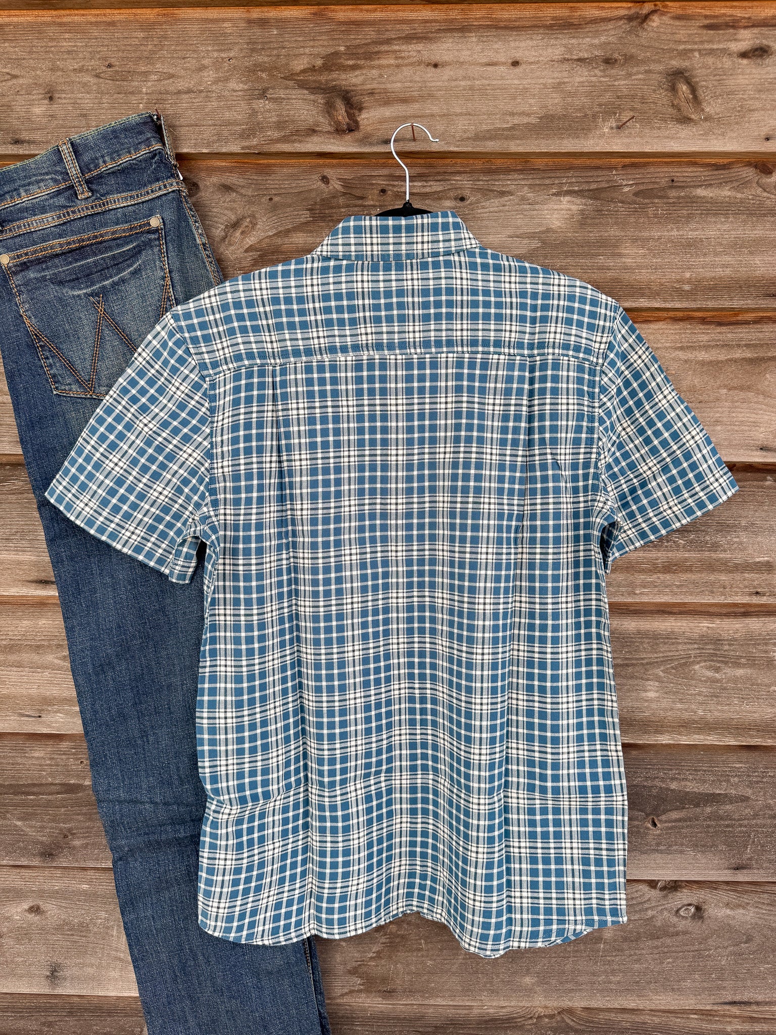 Taking measurements, finishing paperwork, or relaxing after a long day, this men's short sleeve, plaid shirt offers flexibility on or off the clock. It's made of lightweight cotton, and built with Rugged Flex technology for stretch and easy range of movement.