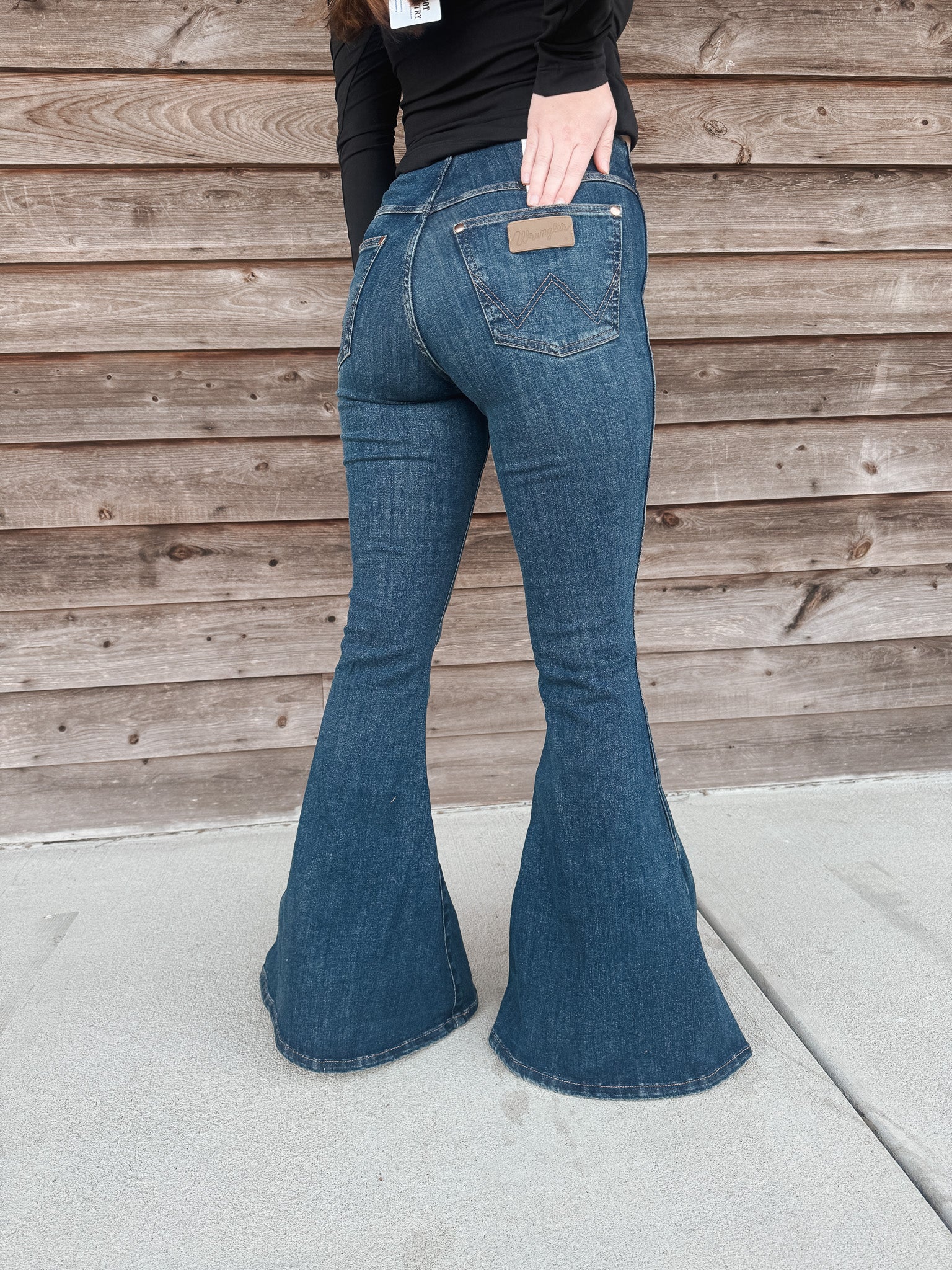 You can chase your dreams around the world, but the Wrangler® x Lainey Wilson Pull-On Bell Bottoms will always make you feel at home. Crafted from a unique stretch denim, these jeans celebrate your curves from every angle. They’re modeled after our high-rise Trumpet Flare but with a slimmer knee and fuller bell bottom to honor Lainey’s signature silhouette. They feature a forgiving pull-on waistband with her embroidered "LW" initials. You’ll also recognize the signature ‘W’ stitching and logo patch. Flattering and fabulous, you’ll reach for them as much as Lainey does.