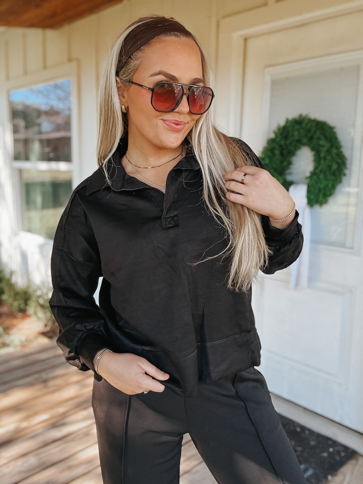 Effortless Sass Black Scuba Pullover