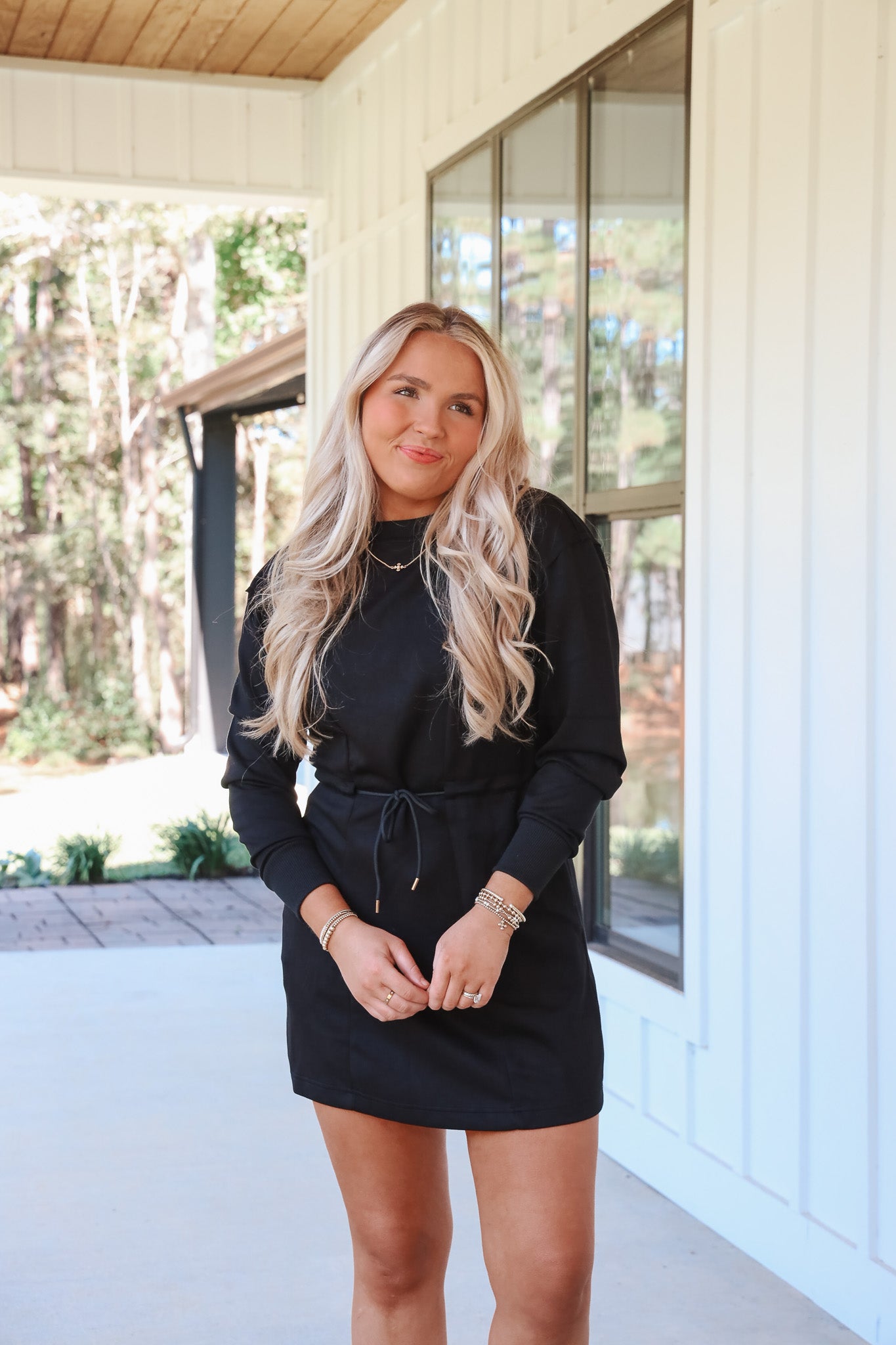 Slip into effortless elegance with this Luxeknit mini dress, crafted from buttery soft knit that feels as luxurious as it looks. The classic crew neck and long sleeves, paired with ribbed cuffs, offer timeless style, while the adjustable drawstring waist allows you to customize your fit. Perfect for transitioning from day to night, this versatile piece delivers comfort without compromising style!