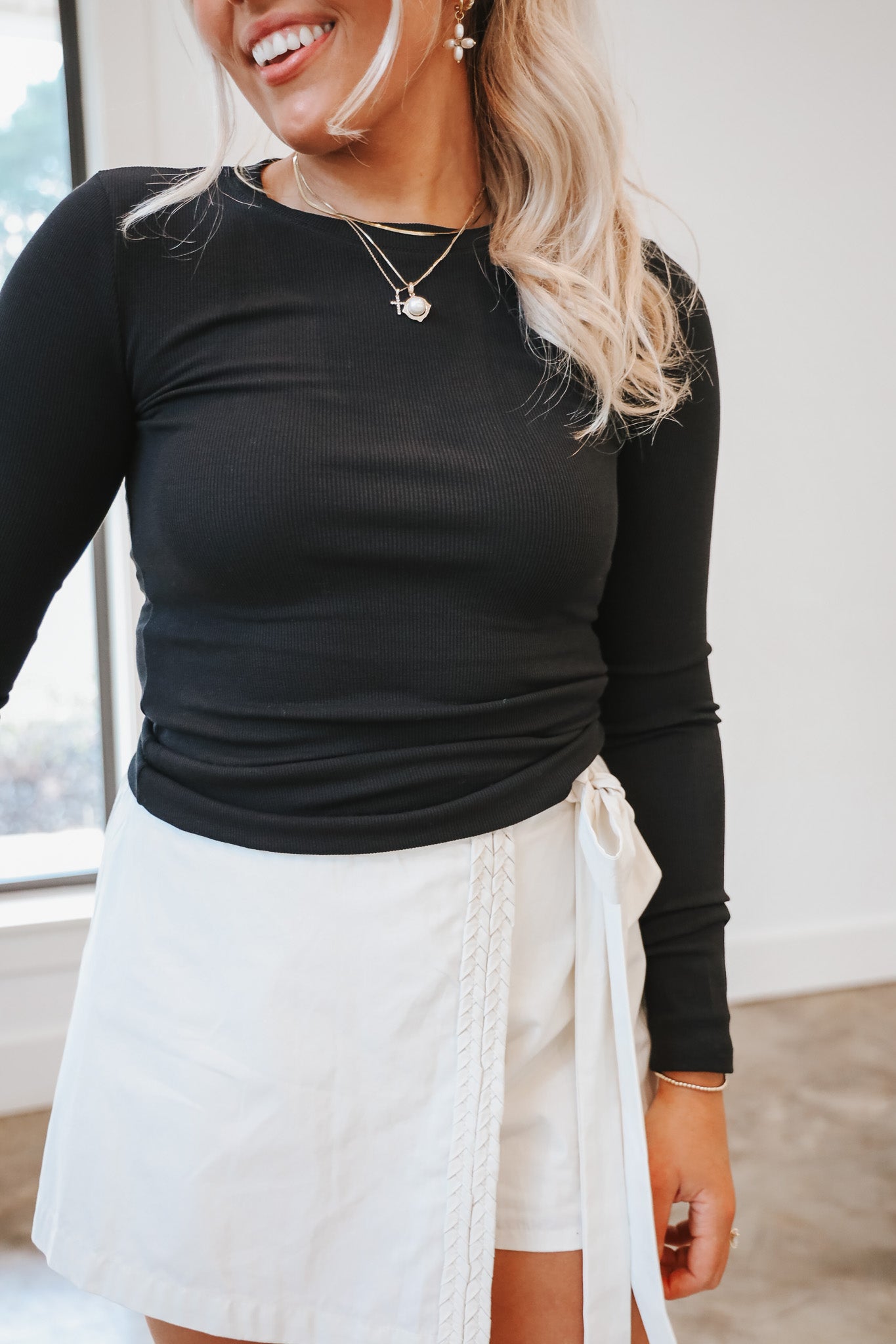This playful cotton skort combines style and comfort effortlessly. Featuring a charming wrap-front design with braided trim along the waist and side, it adds a fun, textured detail. The self-tie closure and elasticized back waistband ensure a perfect fit, while built-in shorts keep you comfy all day. Its flattering A-line silhouette makes it a versatile piece for sunny outings or casual adventures.