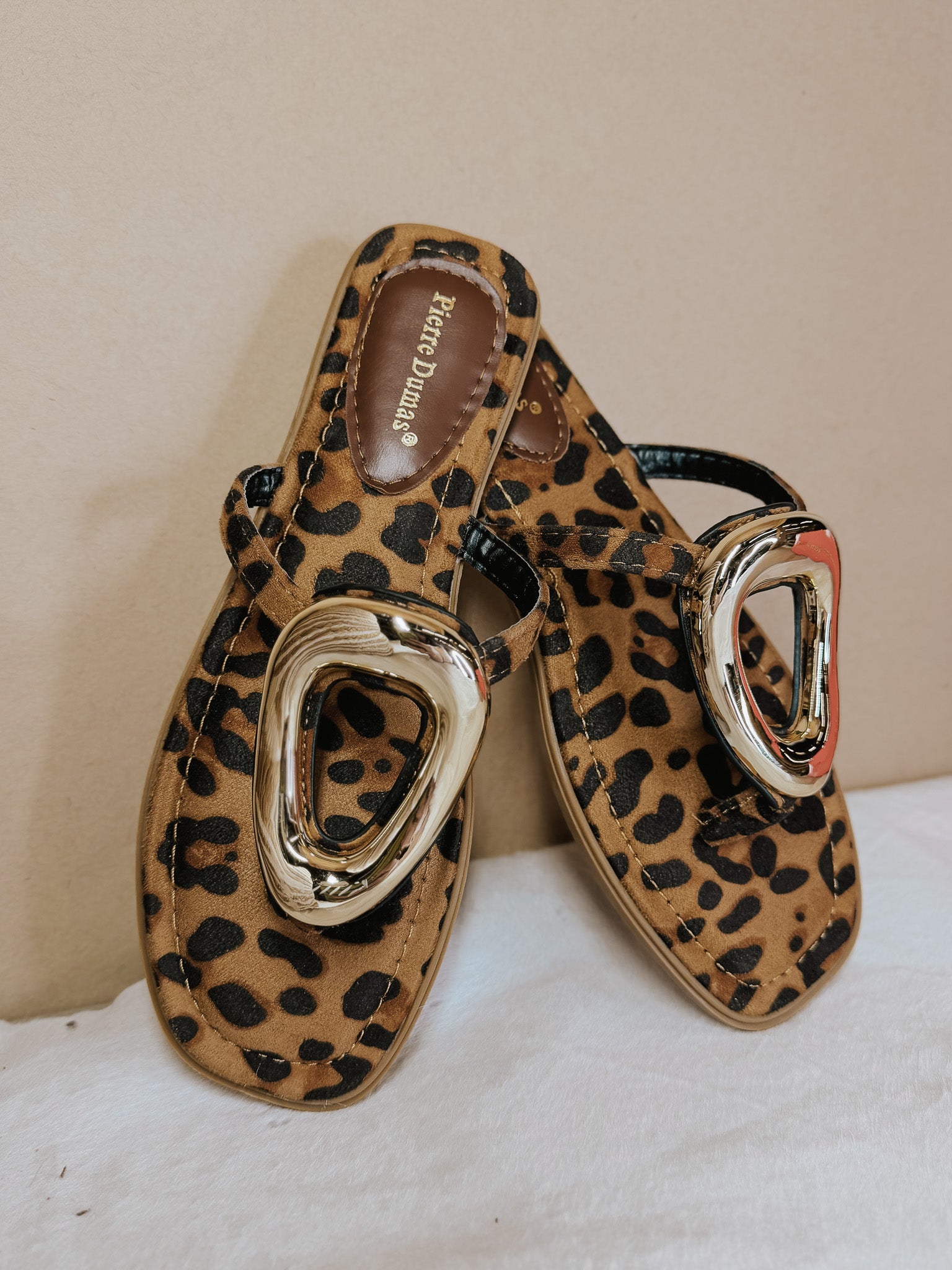 Add a bold touch to your everyday style with these leopard print slide sandals!