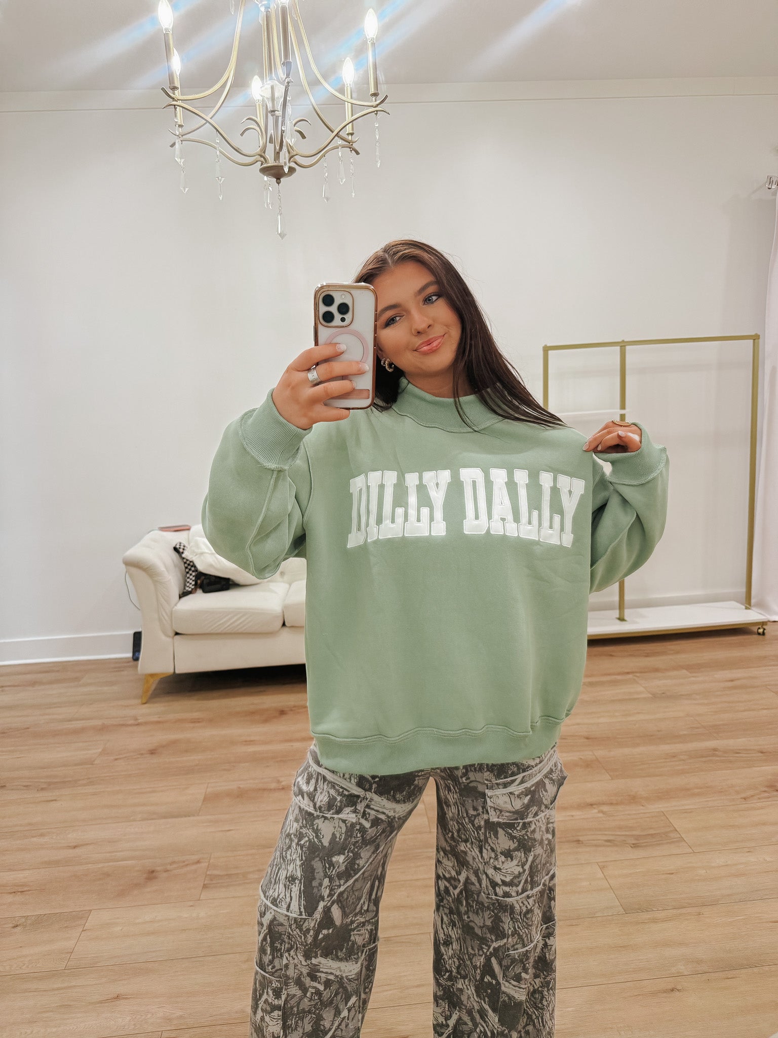 Dilly Dally Mock Neck Sweatshirt in Sage
