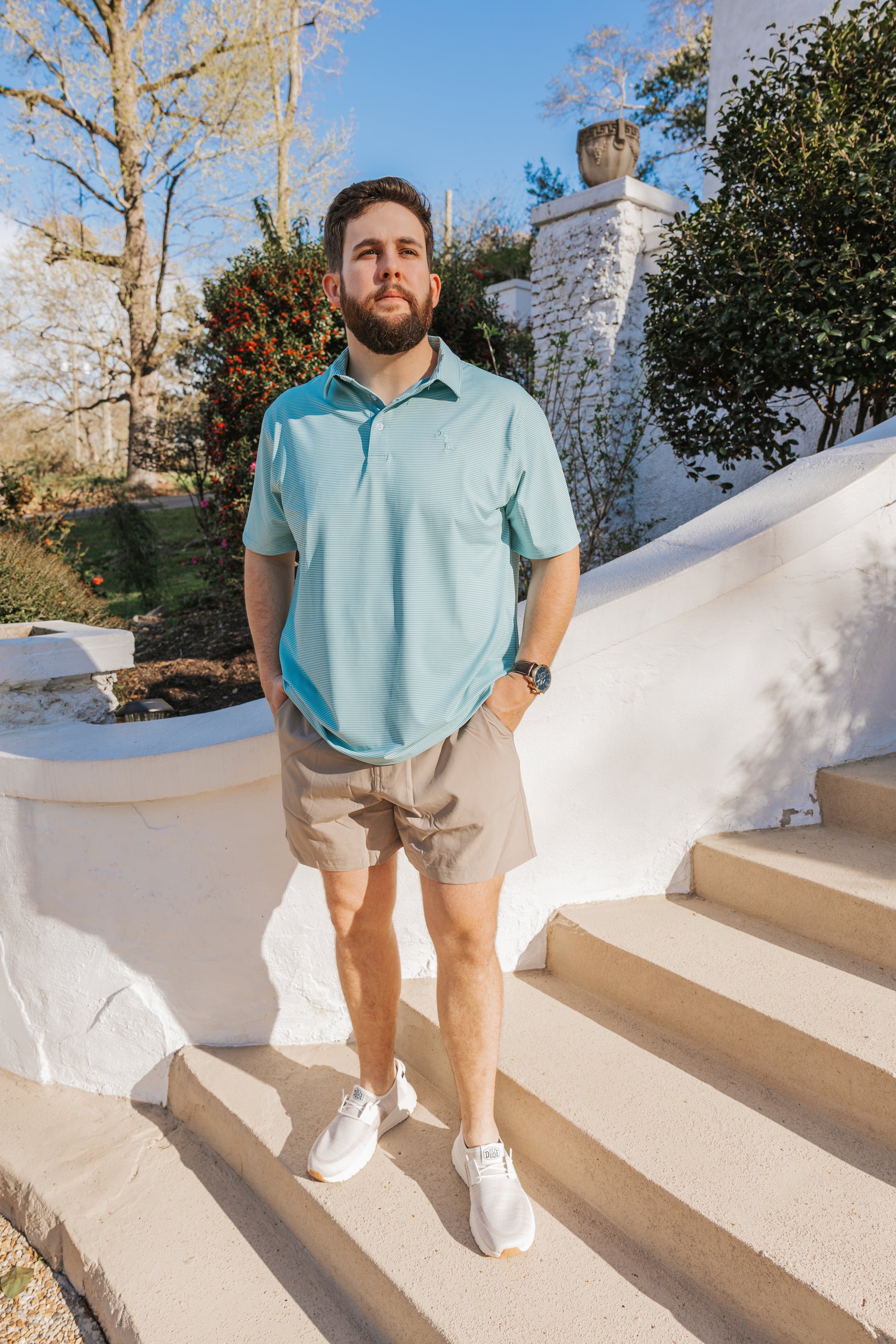 Constructed with breathable material and a flattering fit, and featuring an embroidered dog & moon logo on the left chest, our polos are offered in a variety of colors and patterns fit for anyone, anywhere, and anytime.