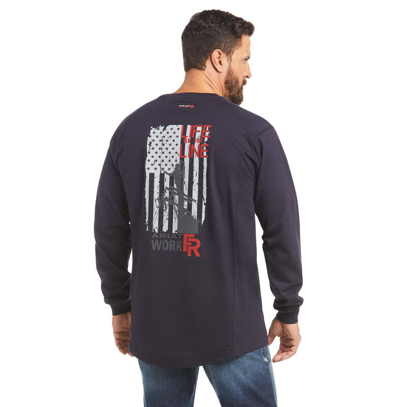 ARIAT FR AIR LIFE ON THE LINE GRAPHIC LONG SLEEVE IN NAVY