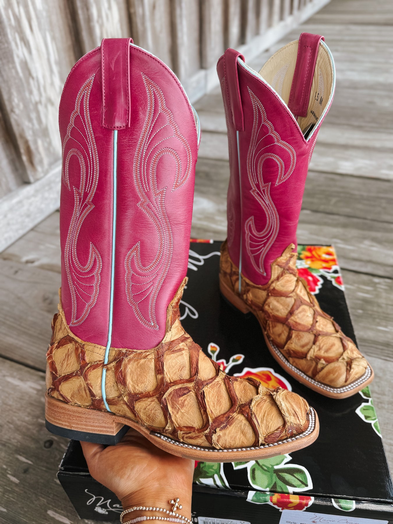 Women's Macie Bean Pink Antique Saddle Pirarucu Boots
