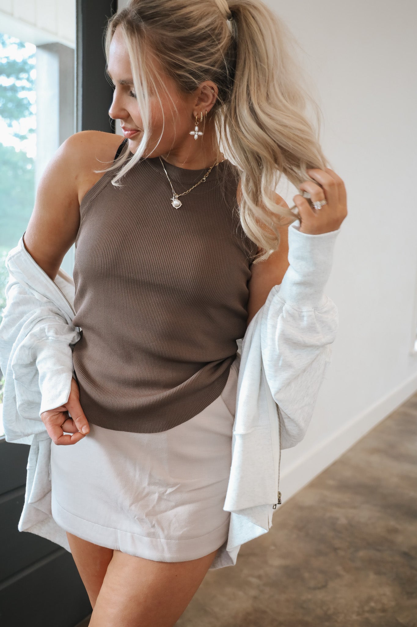 Elevate your everyday look with the All I Need Coffee Tank, a classic ribbed top crafted for both comfort and style. Its flattering fit moves with you, making it perfect for busy mornings or casual outings.