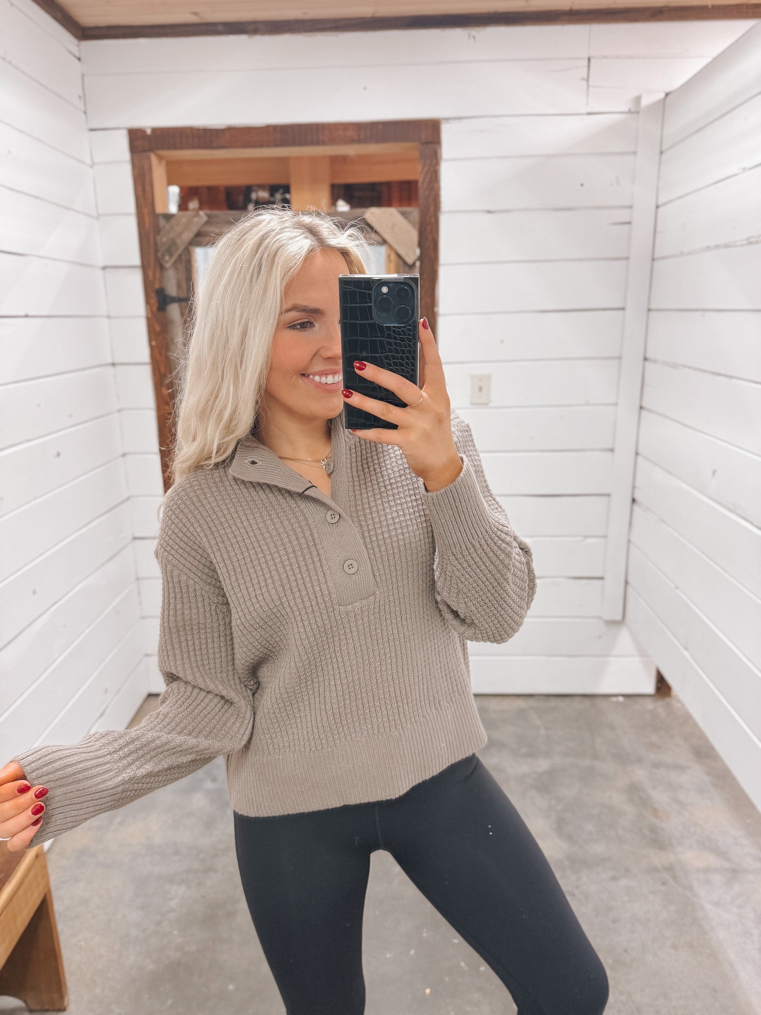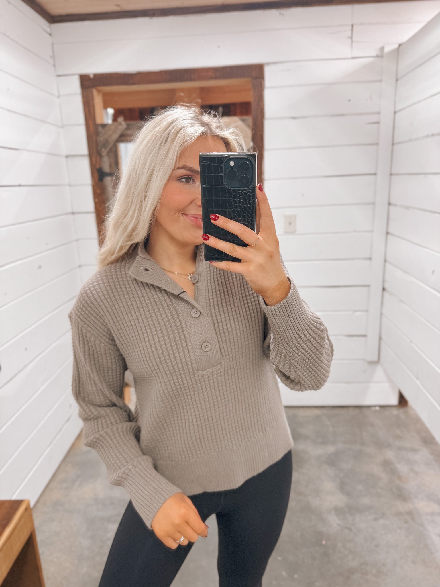 Featuring a cozy fabric and button up collar, our Massey Chunky Sweater has a modern cut and is great for those cool weather days. Pair with our Authentic Pocket tee for a layered look perfect for fall.