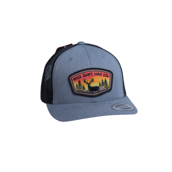 Red Dirt Hat Co. Men's Deer Patch Heather Grey/Black Mesh Back Snap Back Patch Cap Hats - RDHC114