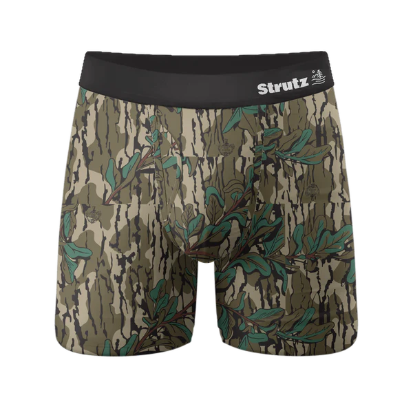 For the man who wants to blend into nature and feel like he's lounging on a cloud, we present: Strutz Underwear with genuine Mossy Oak® Greenleaf™ camo. Yes, that’s right — the same legendary pattern that’s helped hunters vanish into the wild for decades... is now stealthily hugging your nether regions.