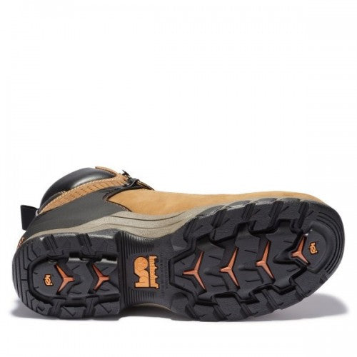 Timberland's field-tested Hypercharge men's work boots feature premium full-grain leather upper, a composite safety toe powered by CarbonShield™ technology, cement construction for flexibility, Stable Stride™ technology stability platform, and an Exclusive Independent Suspension Network™ system for superior control, support and agility. They have an Anti-Fatigue Technology polyurethane footbed for shock absorption and energy return. They are also breathable and feature moisture-wicking lining with anti-microbial treatment for odor control.