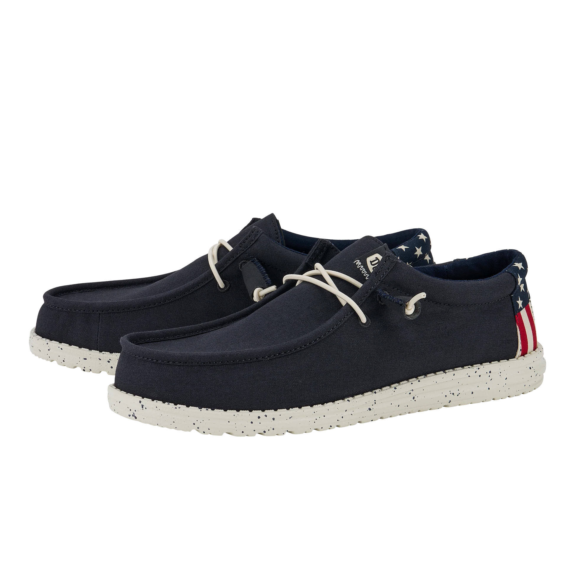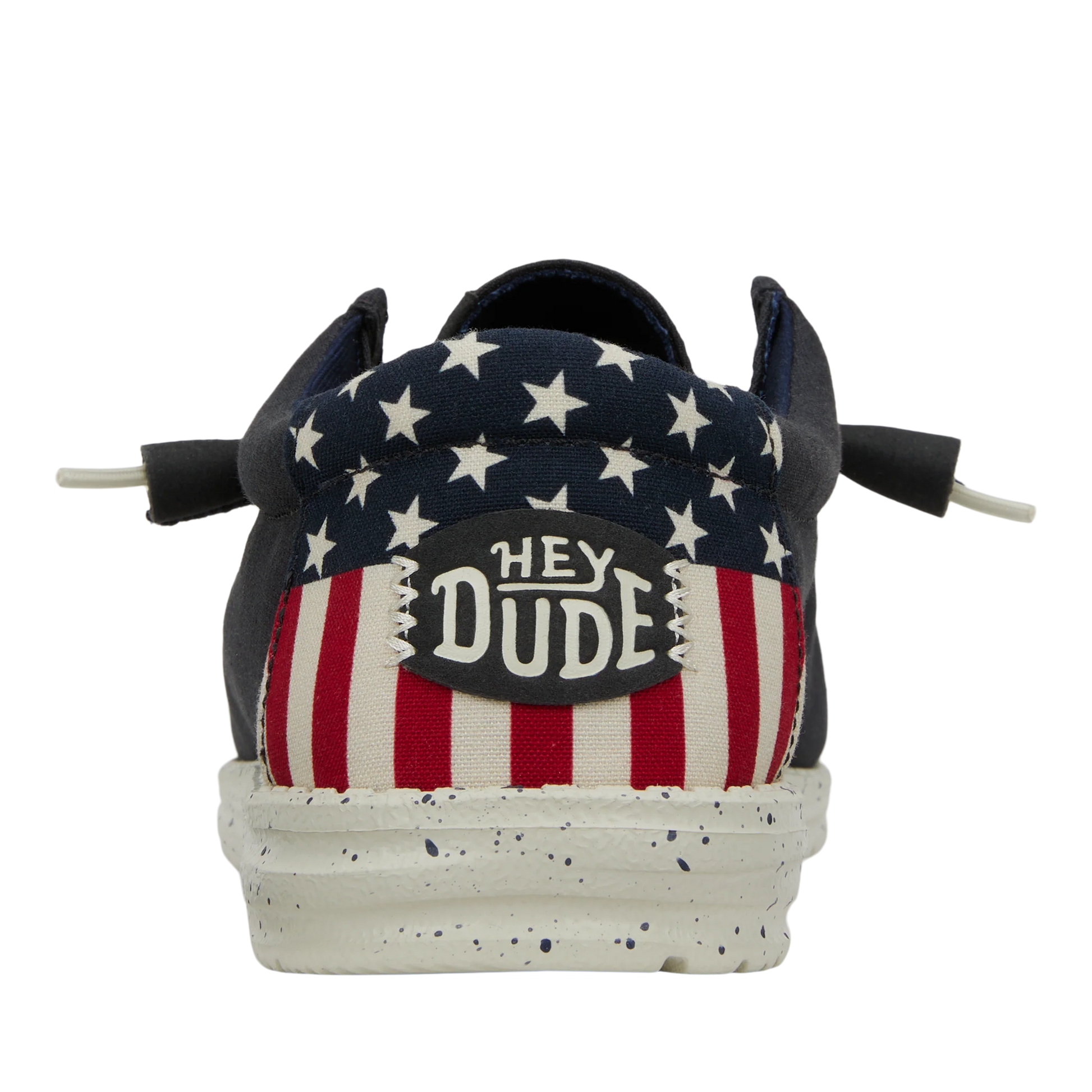 Stars and stripes meet free-roaming, HEYDUDE ™ comfort in the Wally Americana, complete with easy-on and -off laces, a printed sock liner, and cushioned foam under every step.