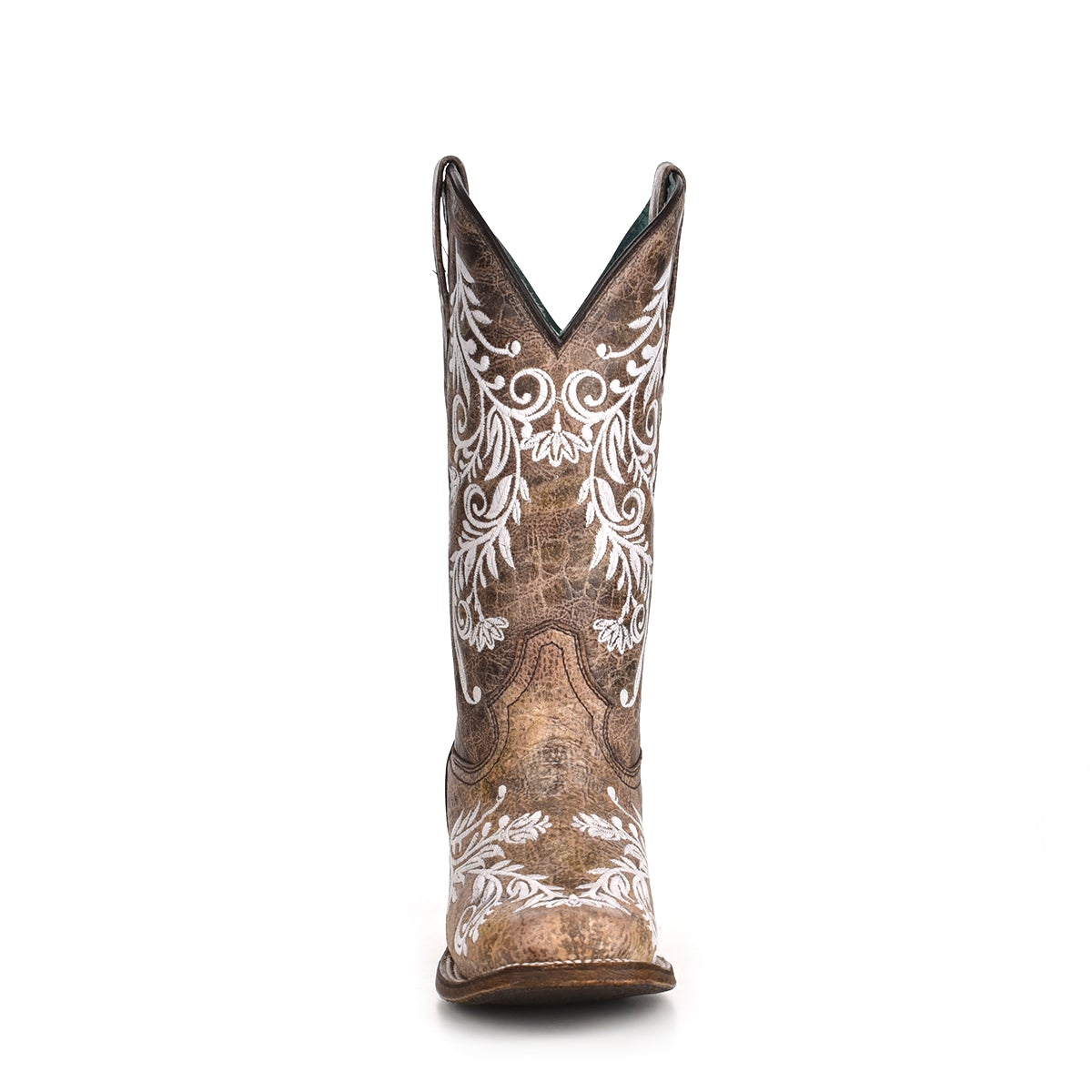 WOMEN'S CORRAL BROWN & WHITE EMBROIDERY BOOT