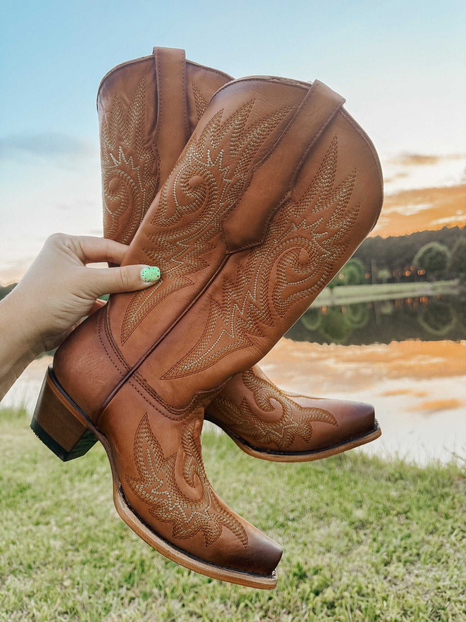 Timeless, sweet and chic. The beautiful shedron leather and embroidery pattern make this a classic Western style.